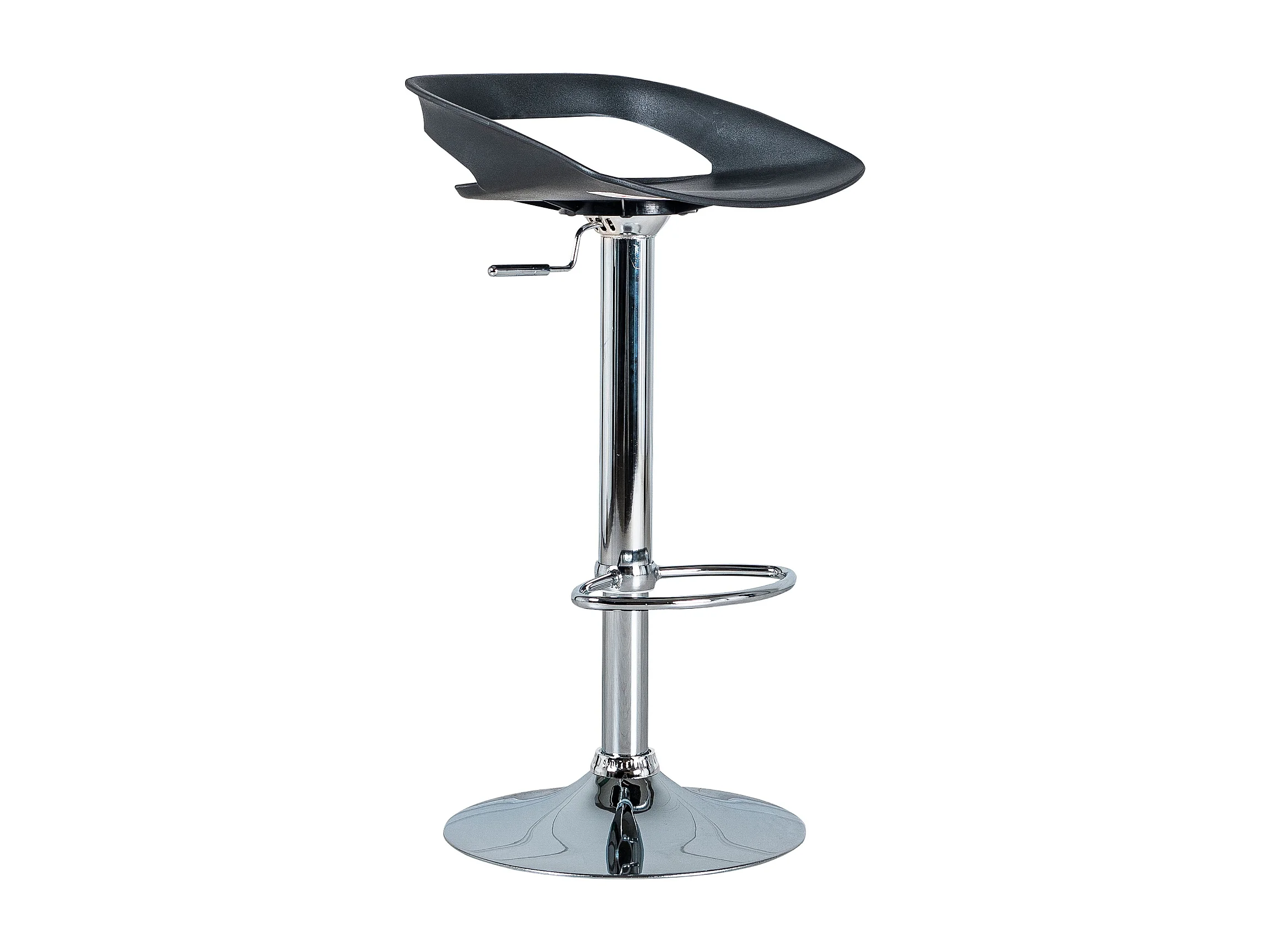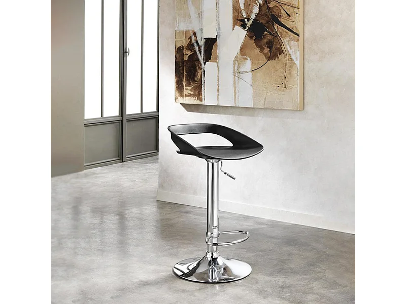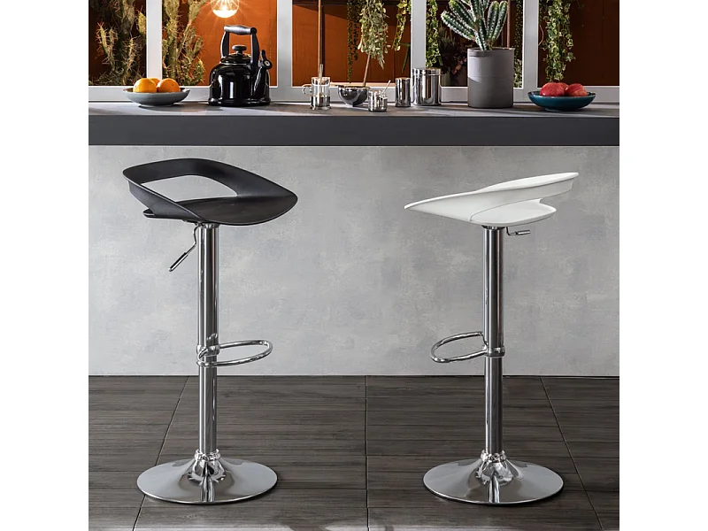 Lot de 2 tabourets hauts "Glenda" noirs en polypropylène avec vérin à gaz et repose-pieds, 40x40 cm, hauteur 69 cm.