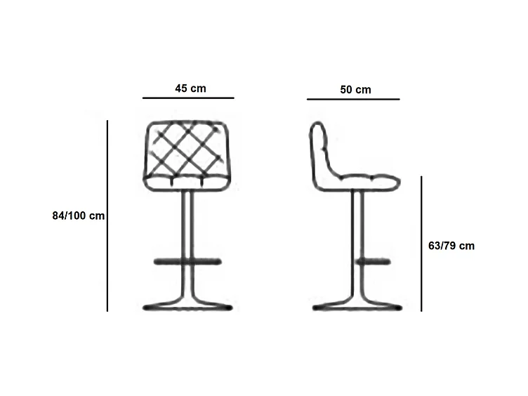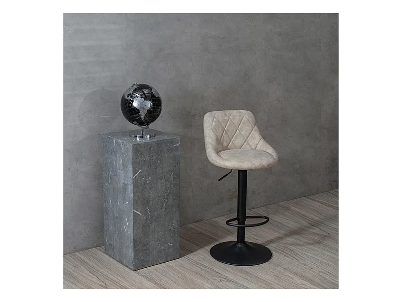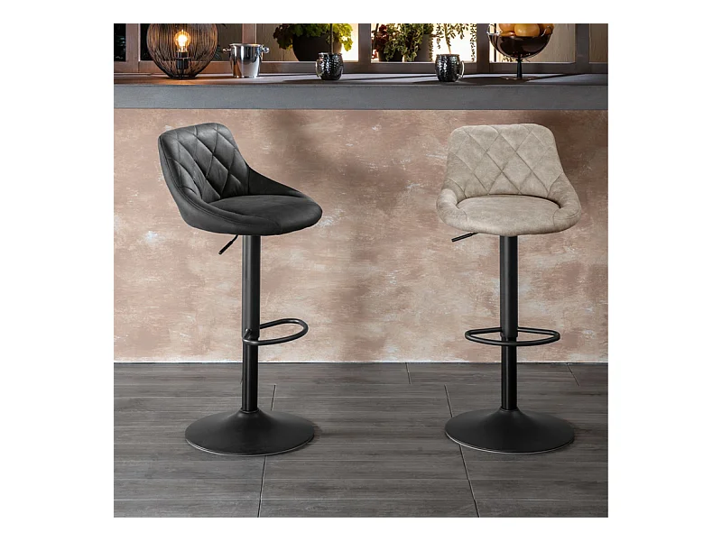 Lot de 2 tabourets hauts modernes "Tema" en tissu beige rembourré avec repose-pieds cm 50x45 84h