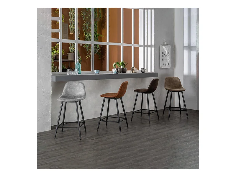 Lot de 2 tabourets hauts rembourrés "Brig" marron en simili cuir avec repose-pieds cm 50x44 84h