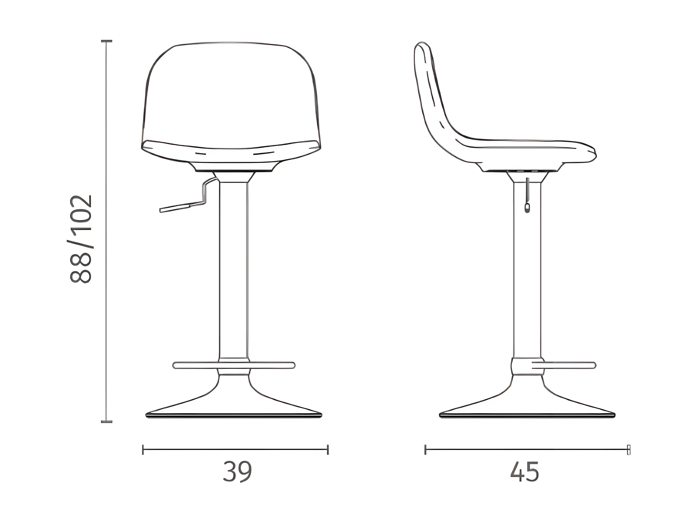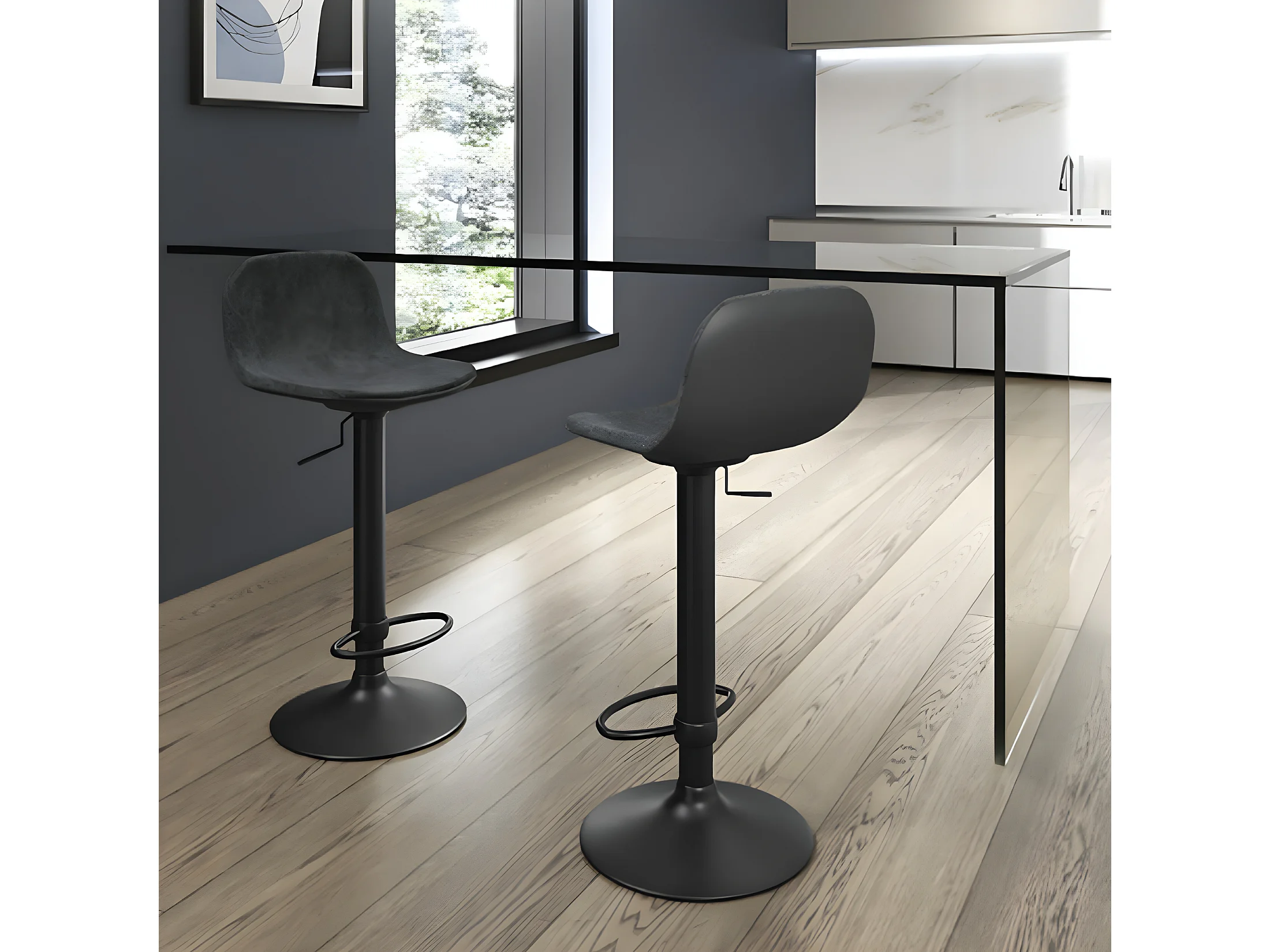 Lot de 2 tabourets hauts "Woody" gris anthracite en tissu avec vérin à gaz et repose-pieds 45x39 cm 86h