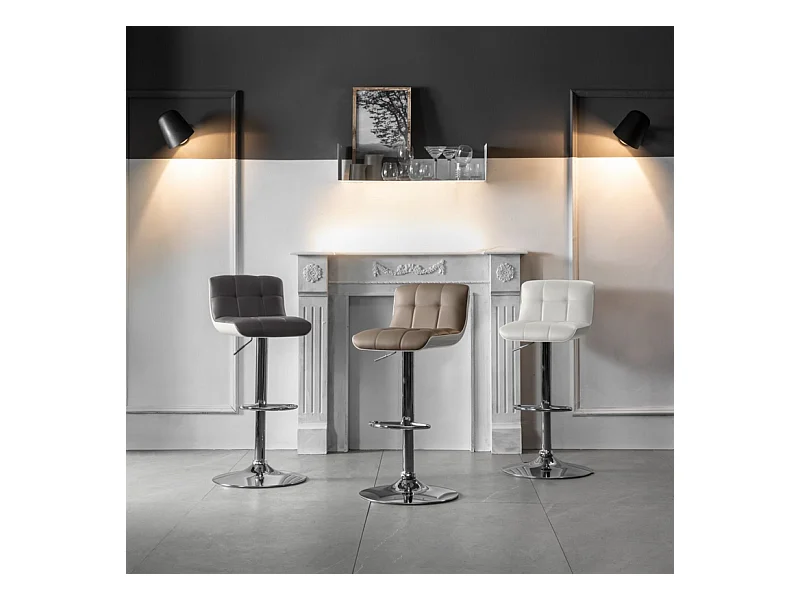 Lot de 2 tabourets rembourrés blancs "Kurt" en simili cuir avec vérin à gaz et repose-pieds cm 38,5x36 83h