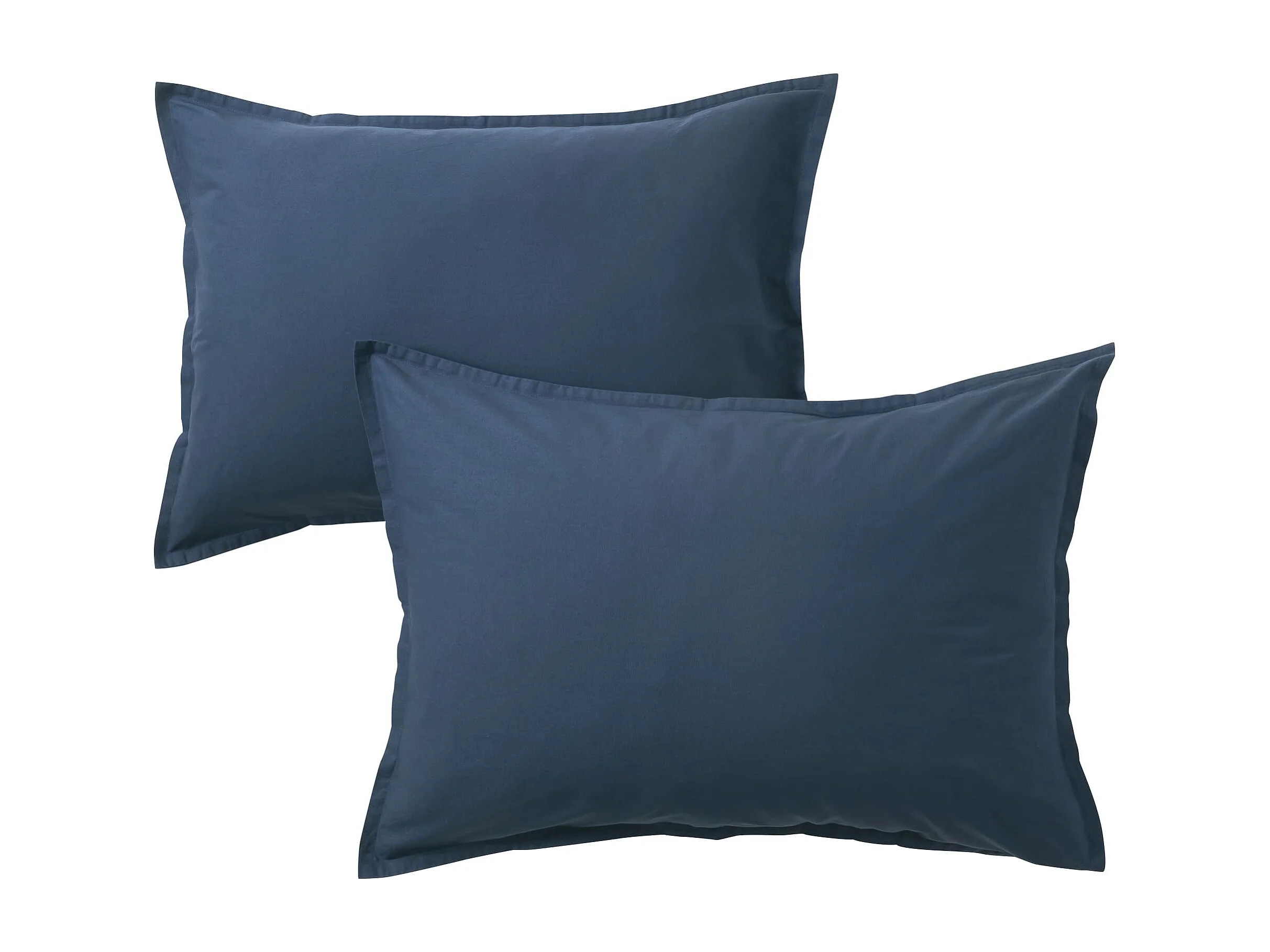 Lot de 2 taies d'oreiller coton lavé - SOMEO Bleu marine 50x70 - CELESTE