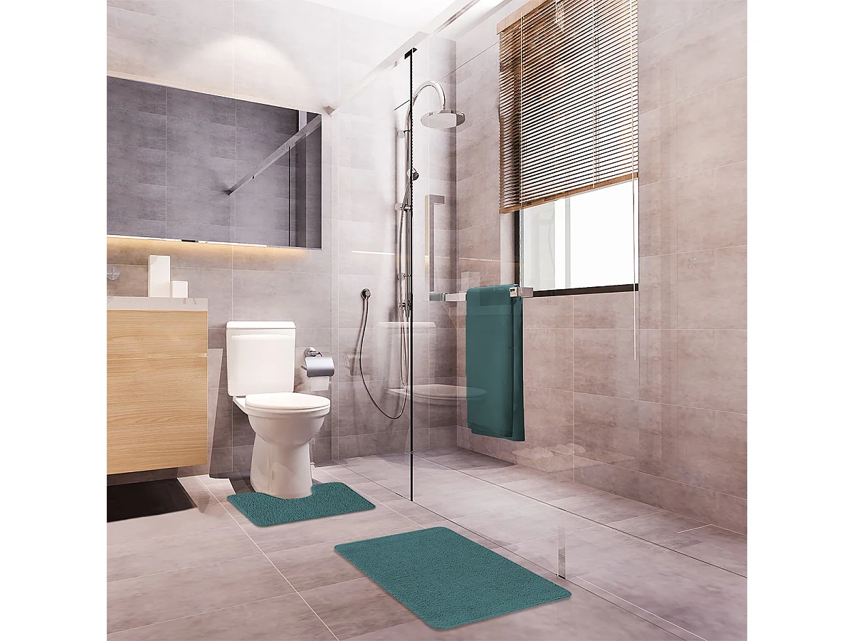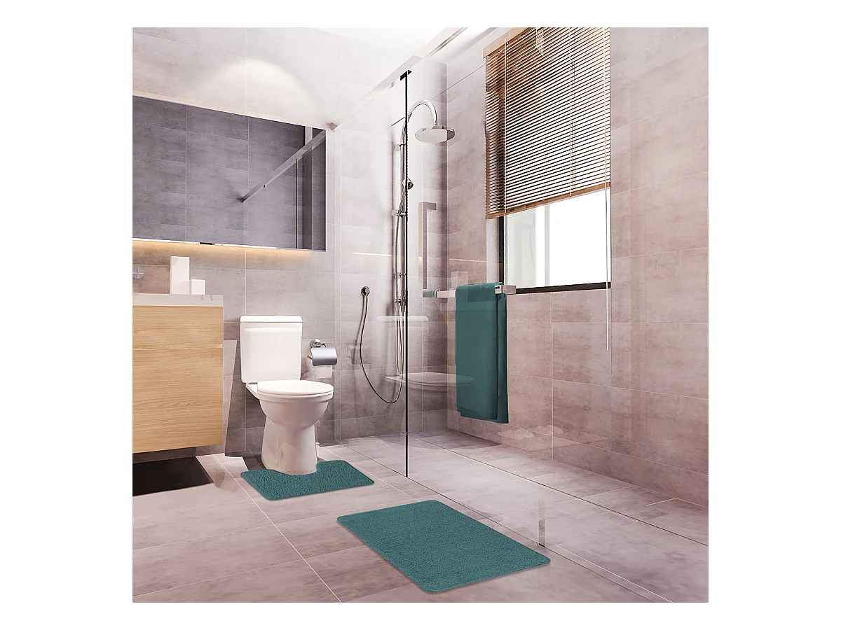Lot de 2 tapis de bain polyester 50x80cm + contour bleu paon