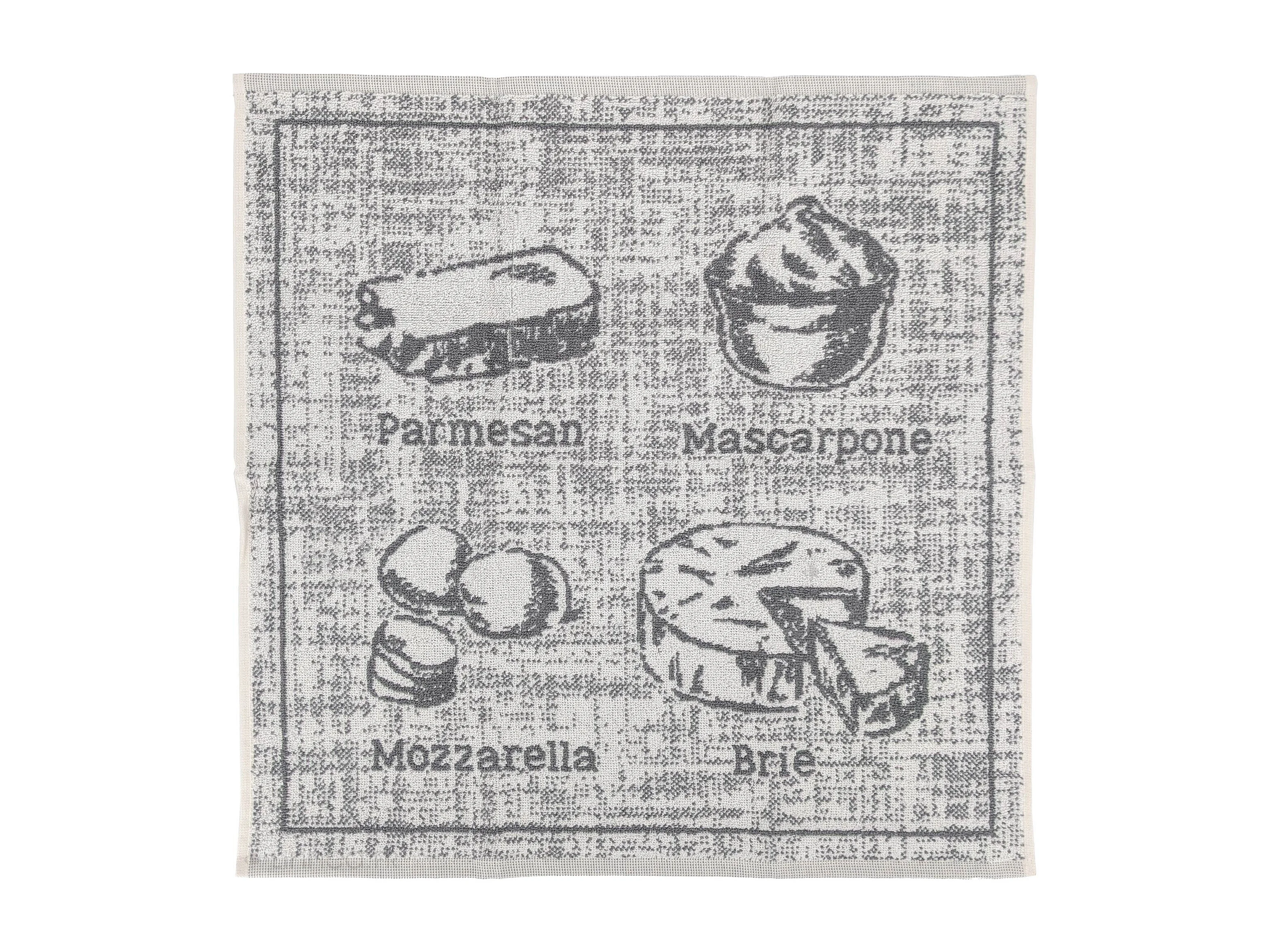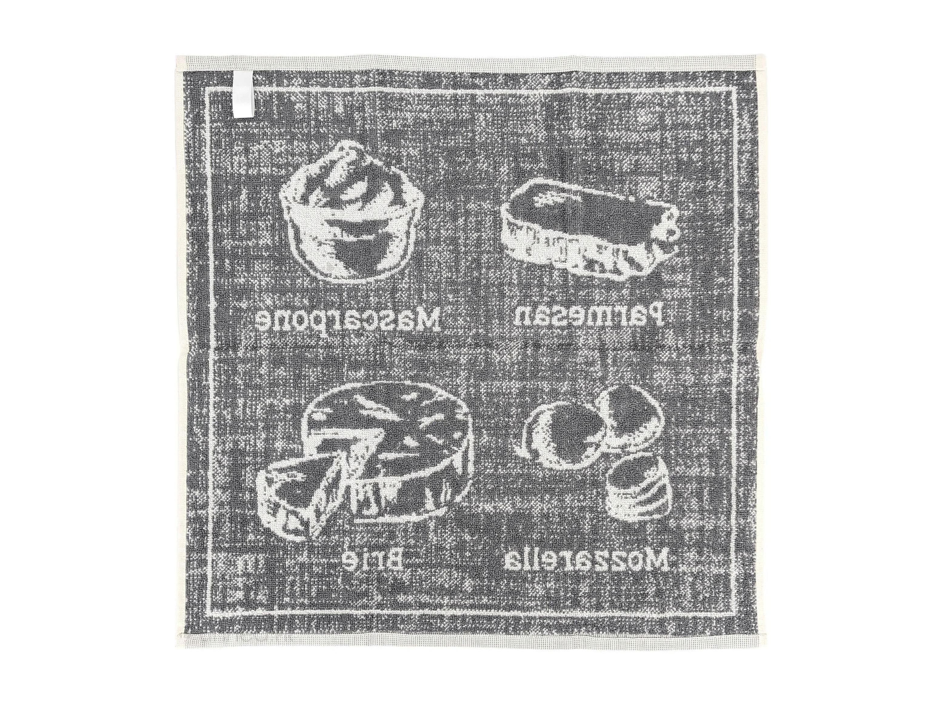 Lot de 2 torchons de cuisine pur coton 50x50 cm motif fromage collection CHEESE gris
