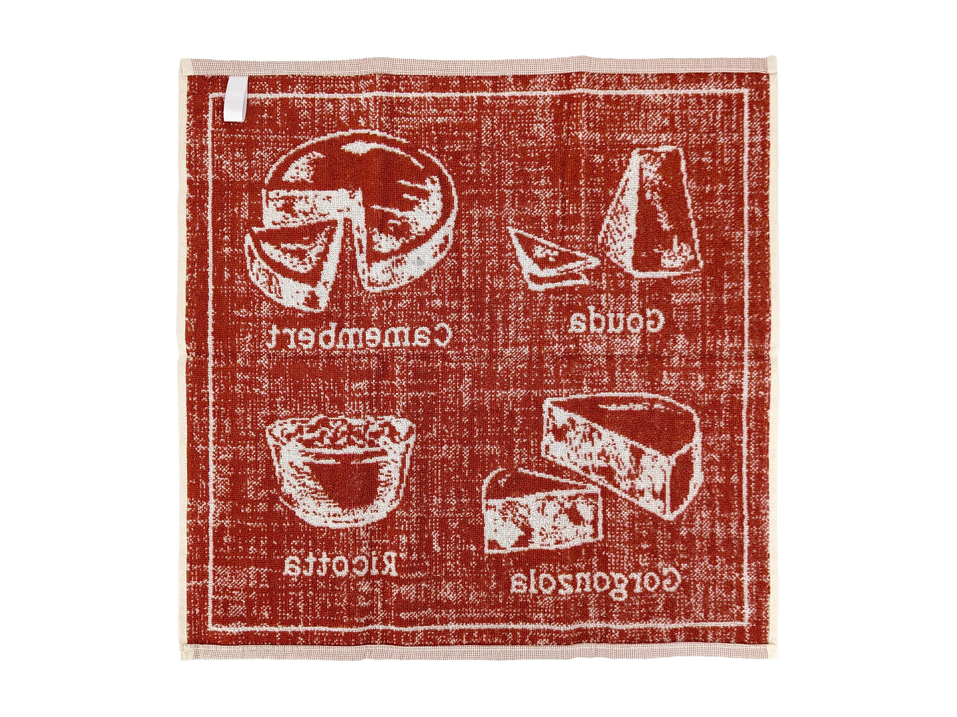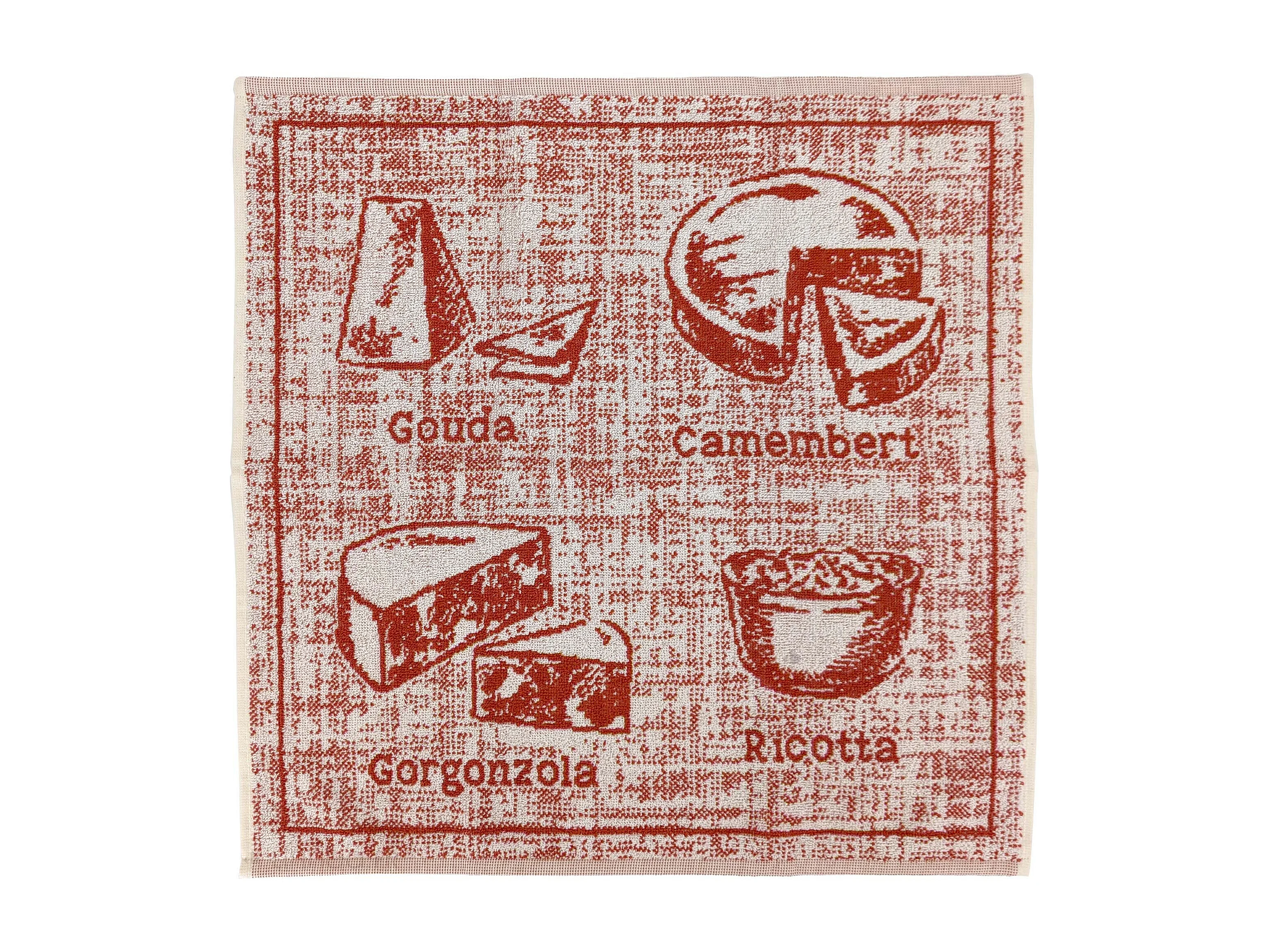 Lot de 2 torchons de cuisine pur coton 50x50 cm motif fromage CHEESE rouge