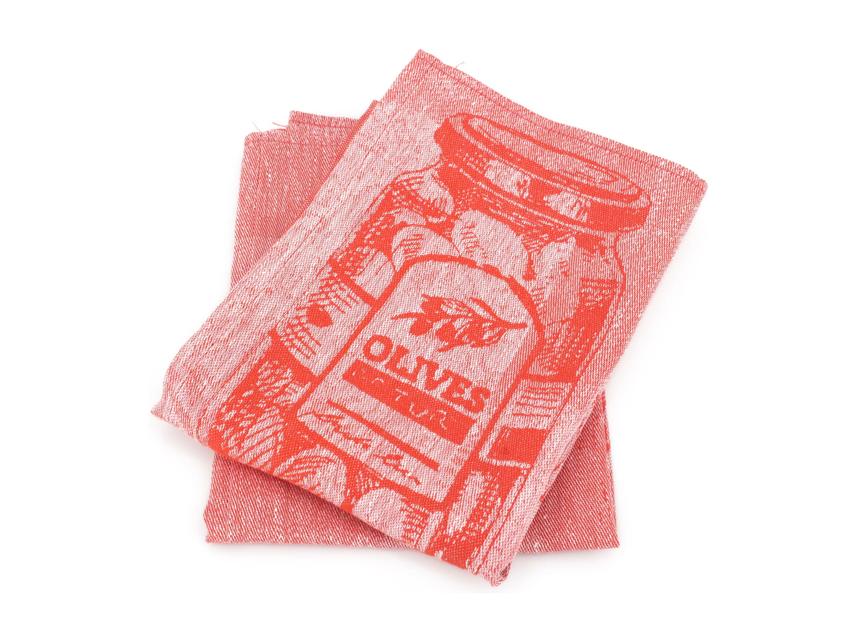 Lot de 2 torchons de cuisine toile 50x70 cm OLIVES orange coton et lin