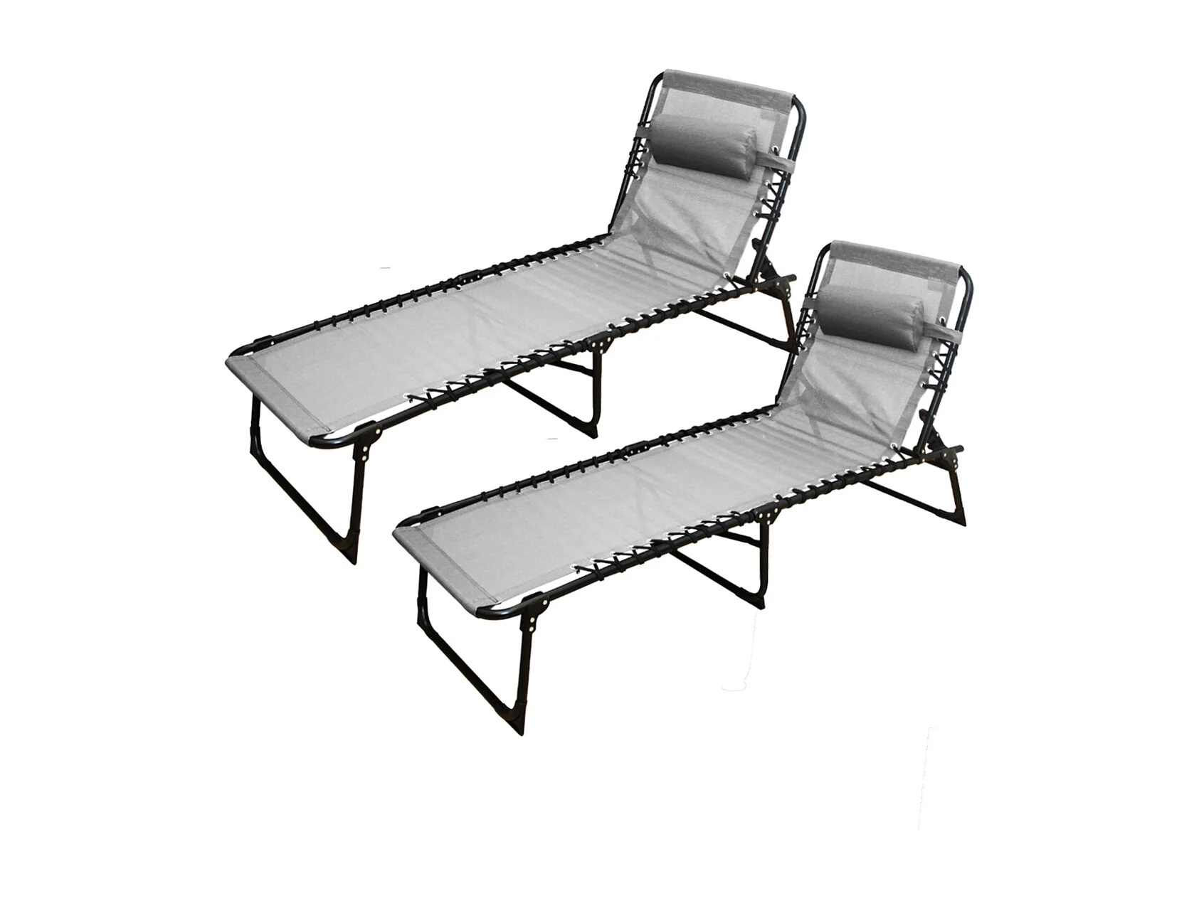 Lot de 2 Transat Chaise longue pliante Bain de soleil coloris Gris clair avec coussin - Longueur 188 x Profondeur 55 x Hauteur 30 cm