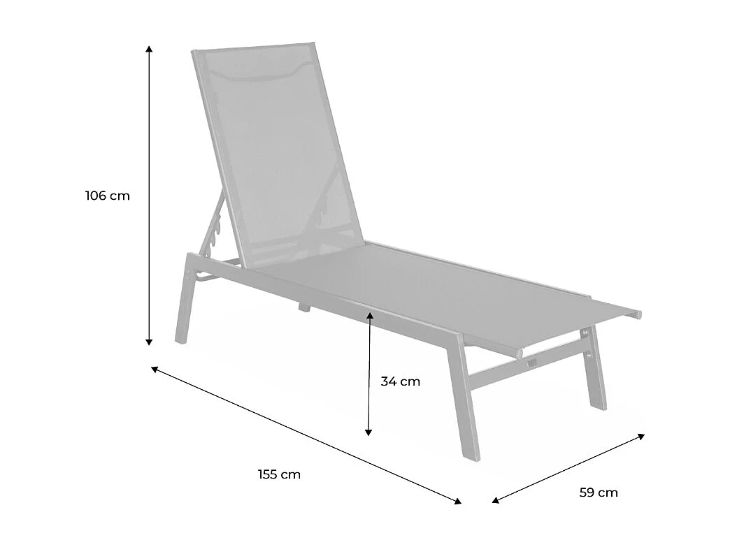 Lot de 2 transats taupe. 5 positions. en textilène et métal. FLORA. L155 x P59 x H106cm