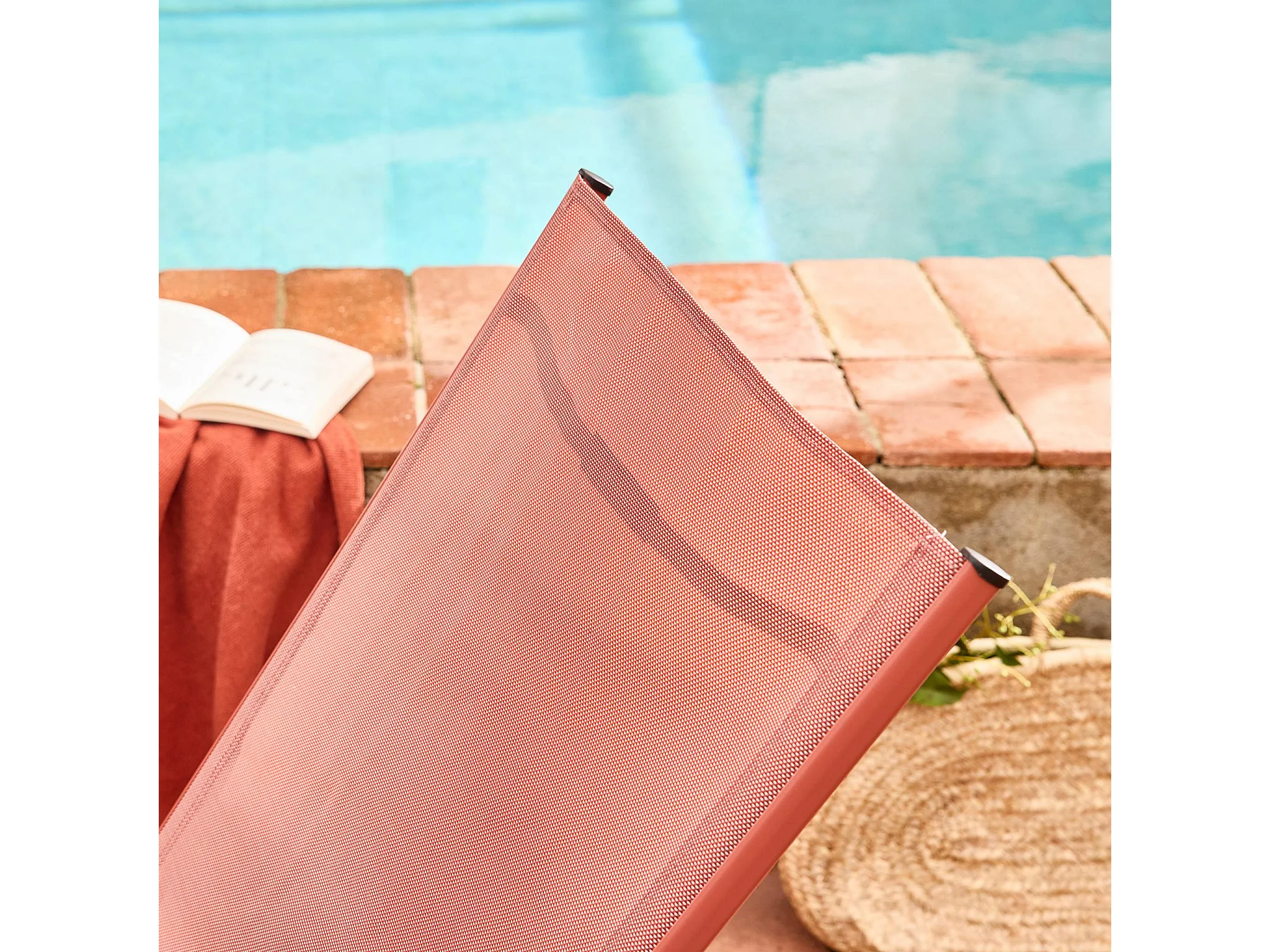 Lot de 2 transats terracotta. 5 positions. en textilène et métal. FLORA. L155 x P59 x H106cm