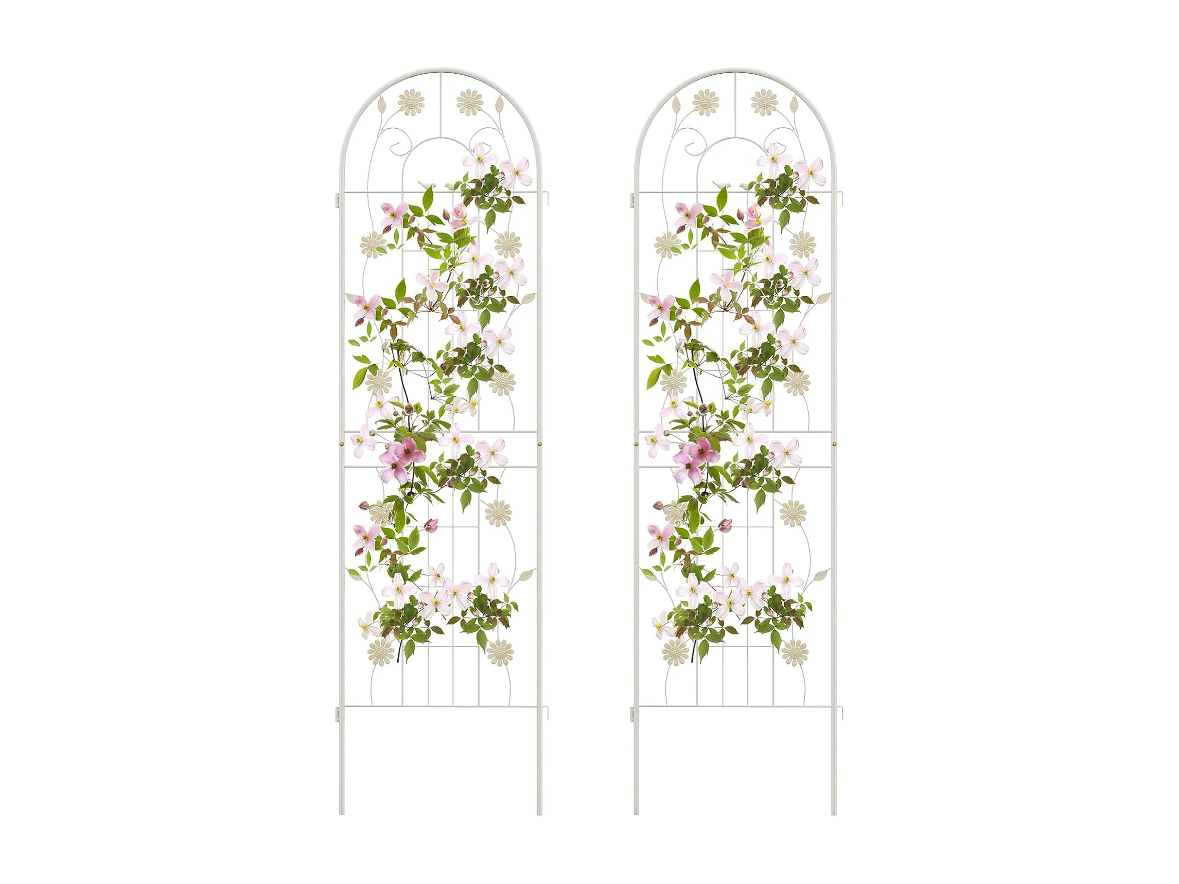Lot de 2 Treillis de Jardin en Métal 180 x 50 cm, Clôture Décorative pour Plante Grimpante, Grille Fleurs Antirouille pour Jardin, Cour, Patio (Blanc)