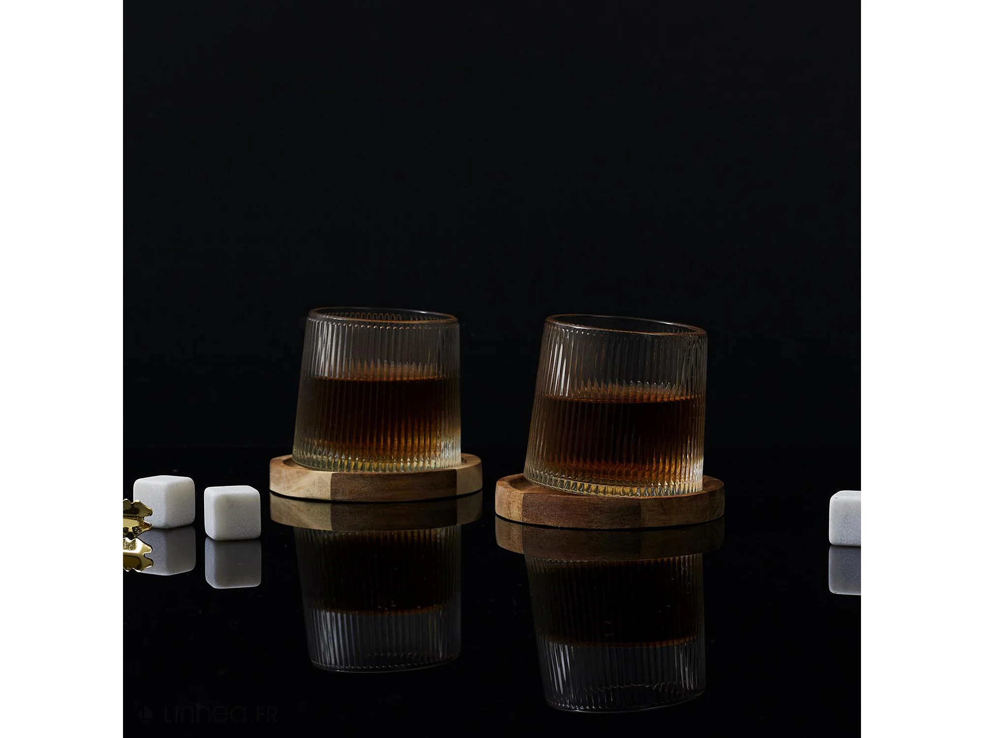 Lot de 2 verres à whisky collection CASK et leur support en acacia