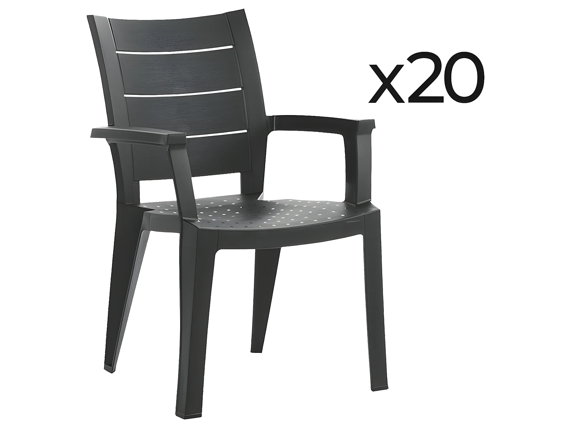 Lot de 20 chaises de jardin empilables en résine coloris Gris - Longueur 59 x Profondeur 60 x Hauteur 90 cm
