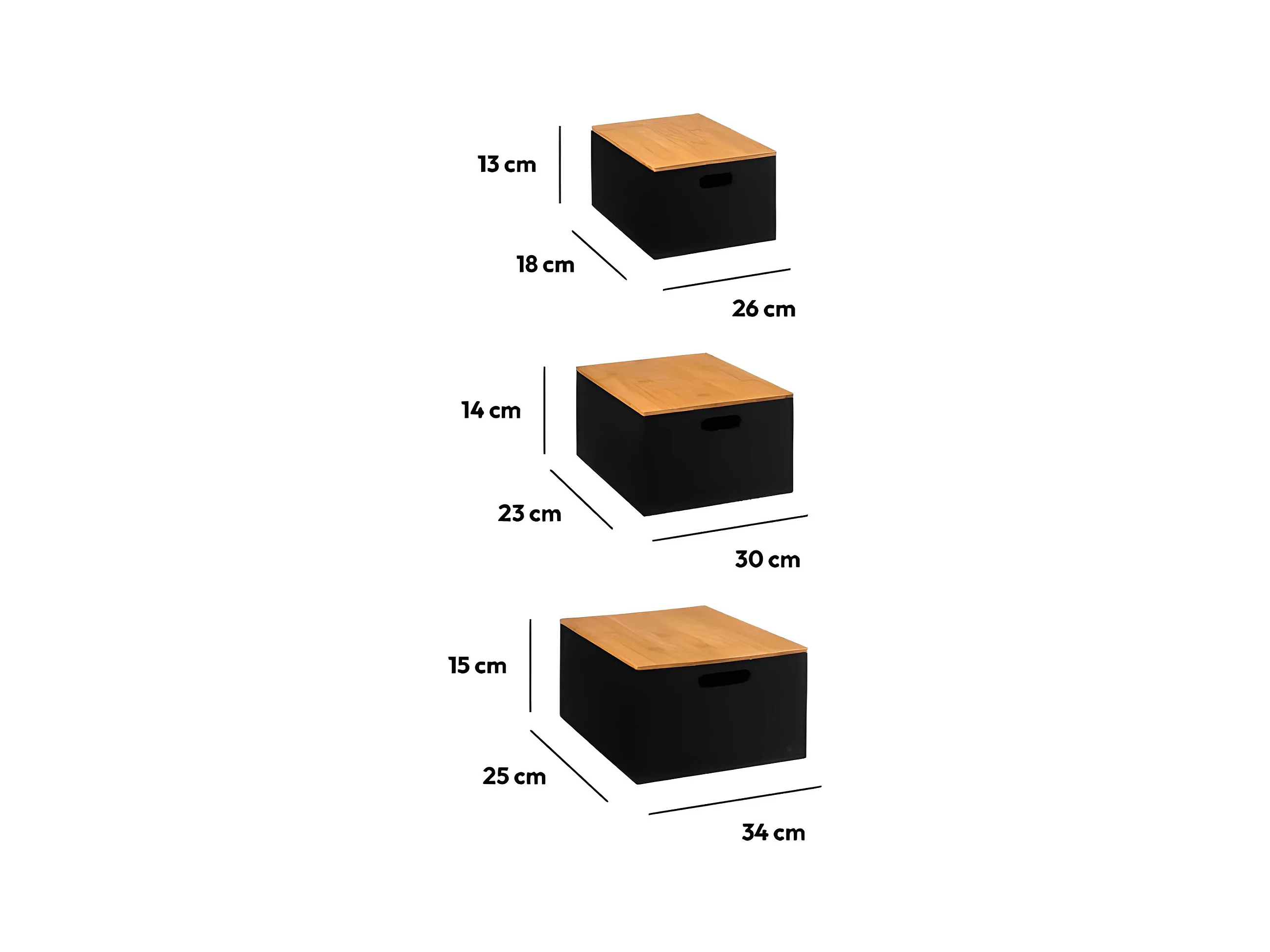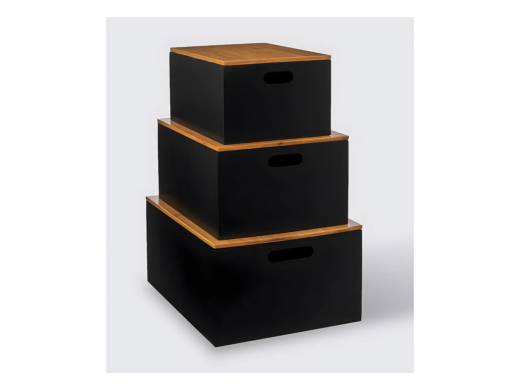 Lot de 3 Boites de rangement en Bois avec couvercle Bambou