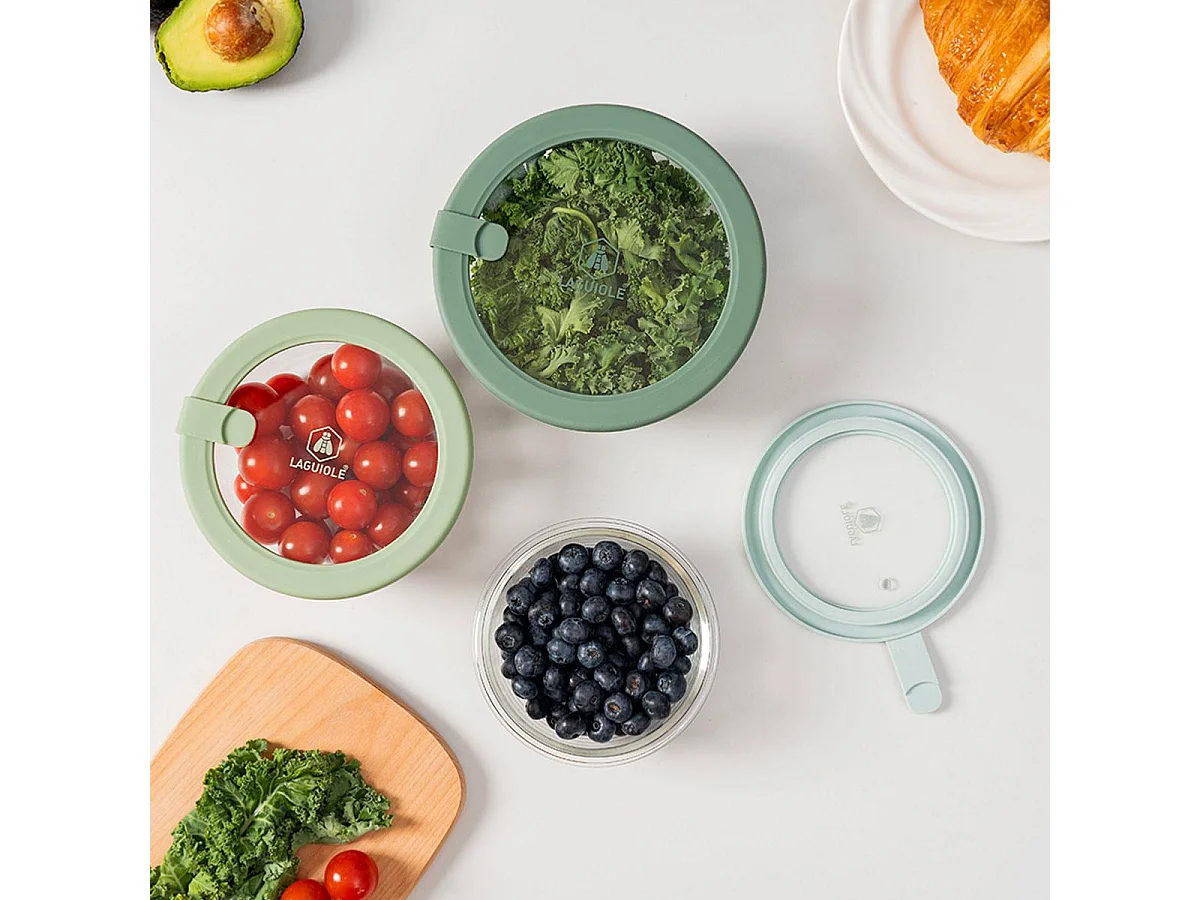 Lot de 3 boîtes en verre rondes avec couvercle 400/650/950ml