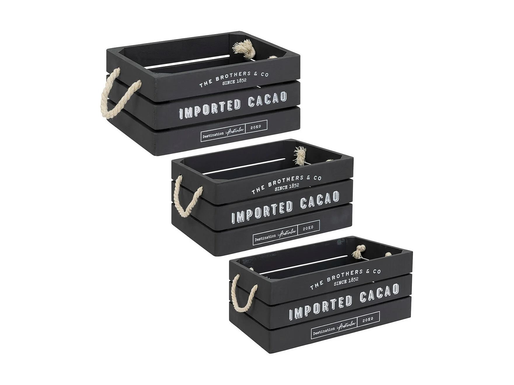 Lot de 3 Caisses de rangement Cagettes en Bois Gris et Corde