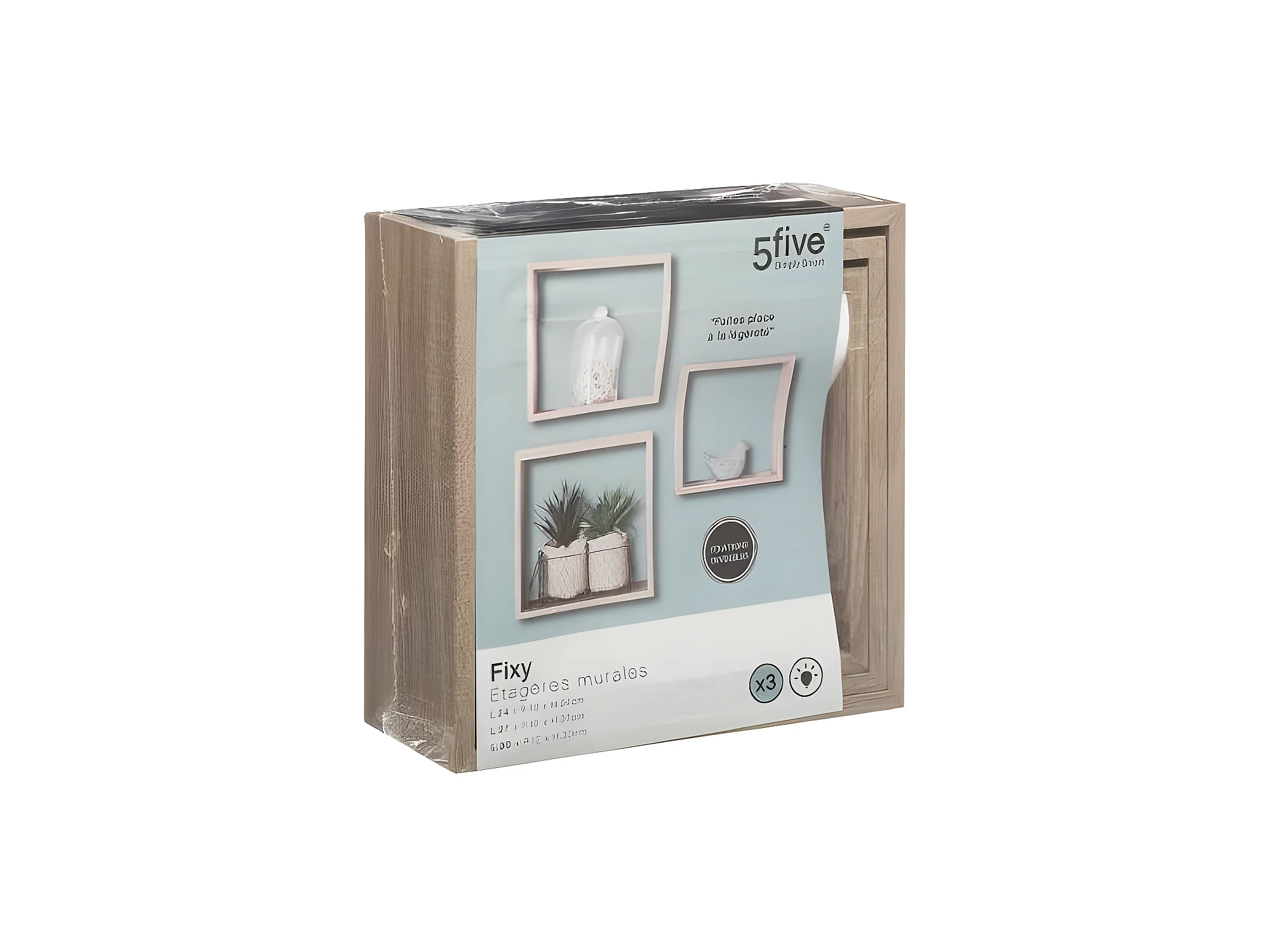 Lot de 3 Étagères murales flottantes Cubes coloris Chêne naturel Fixations invisibles