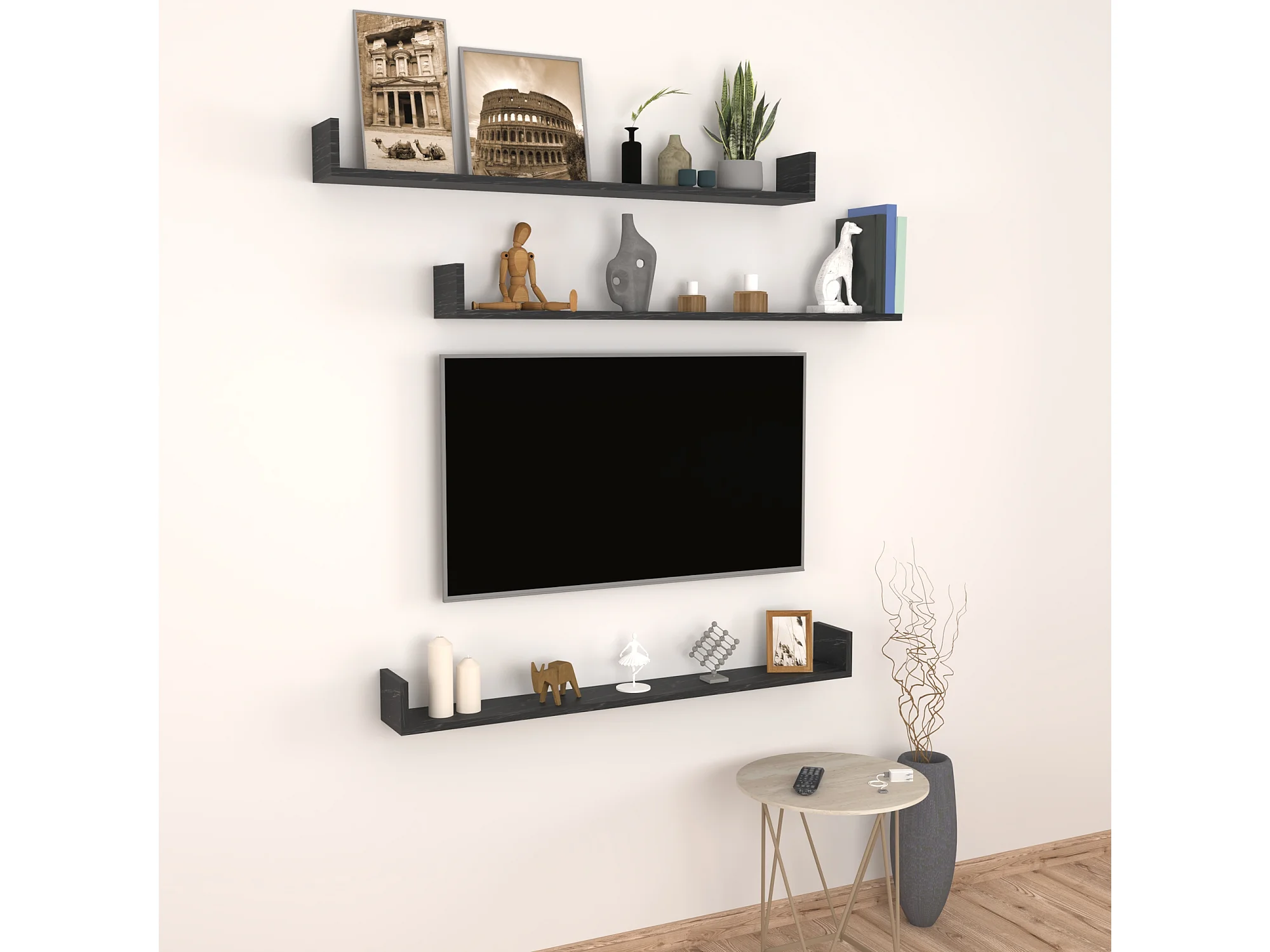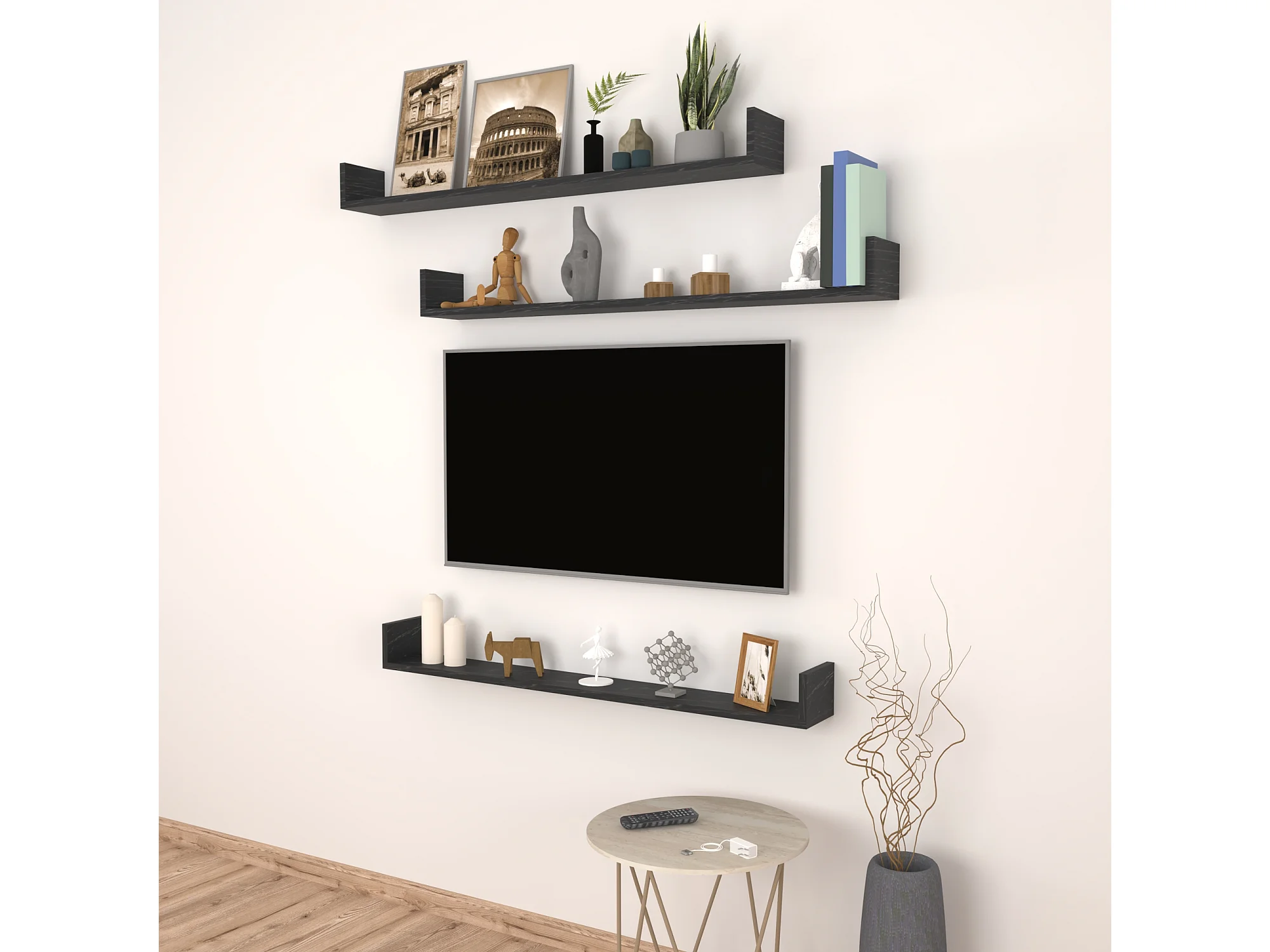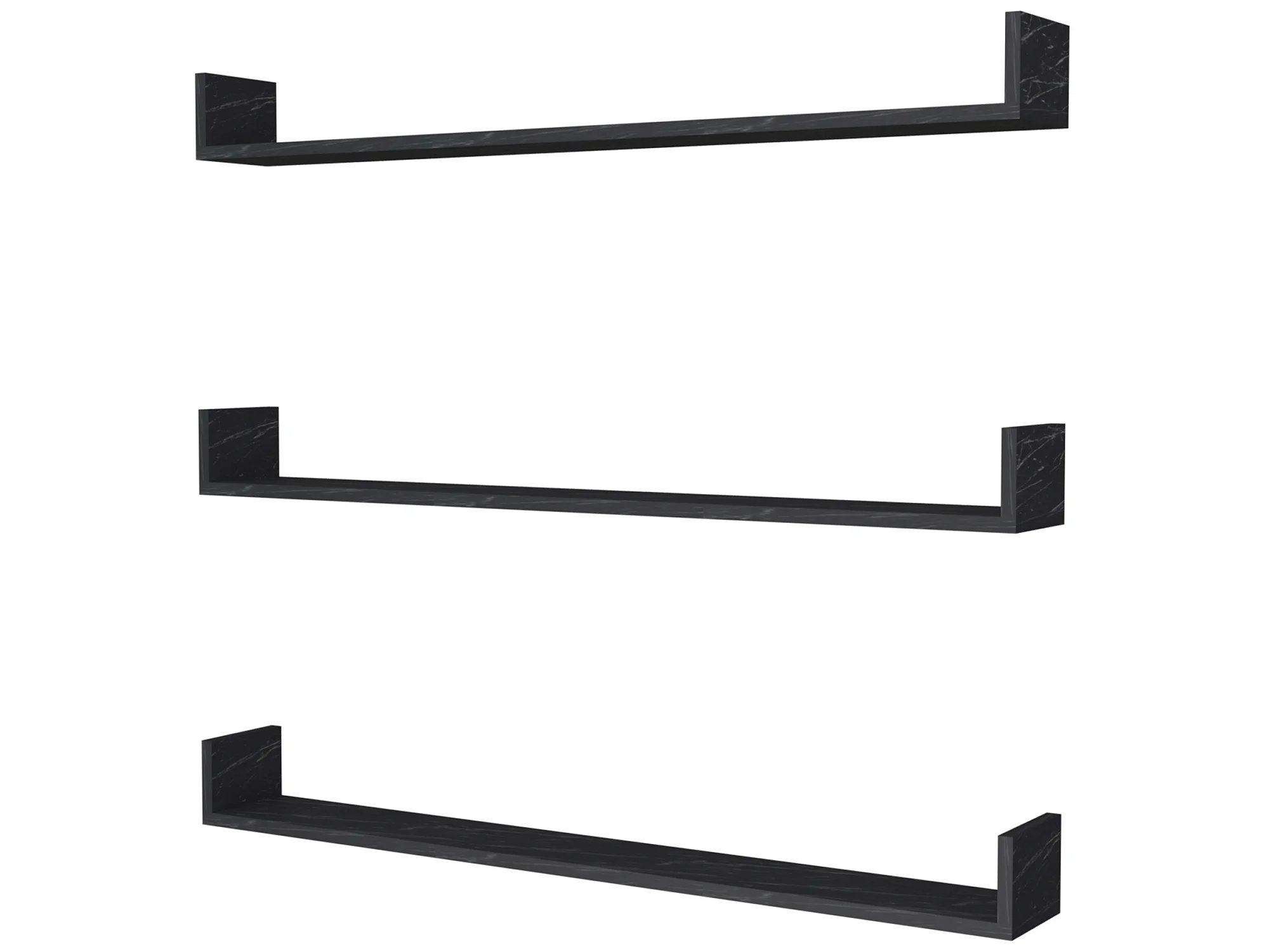 Lot de 3 étagères murales Höganäs 12 x 90 x 15 cm marbre noir [en.casa]
