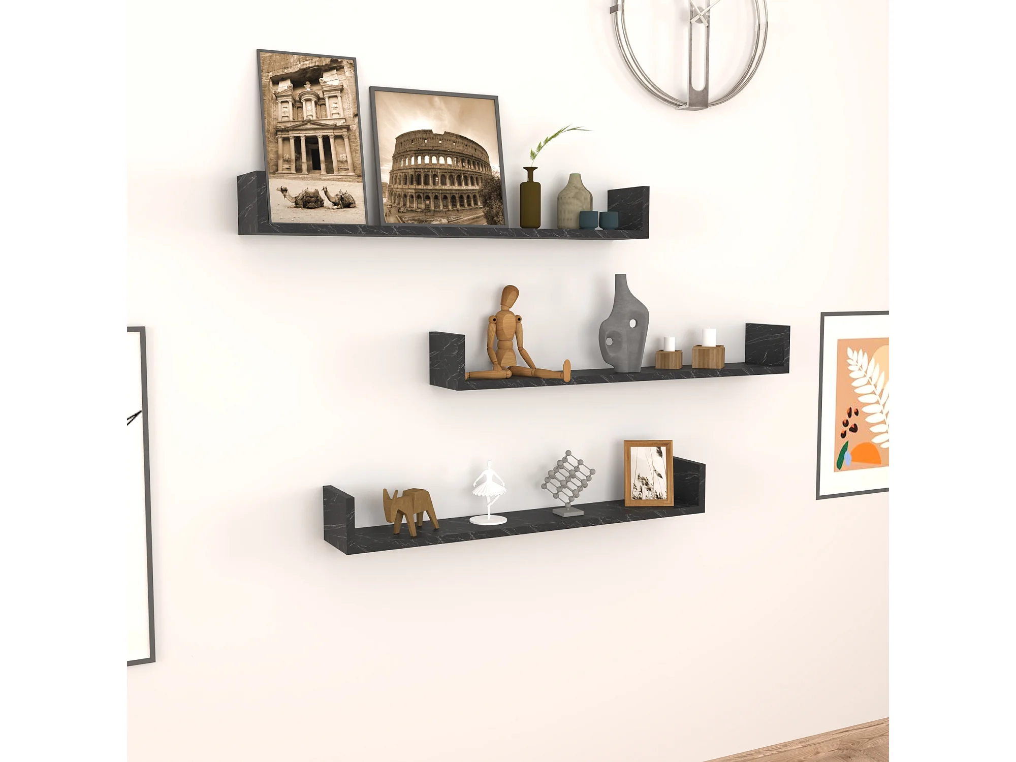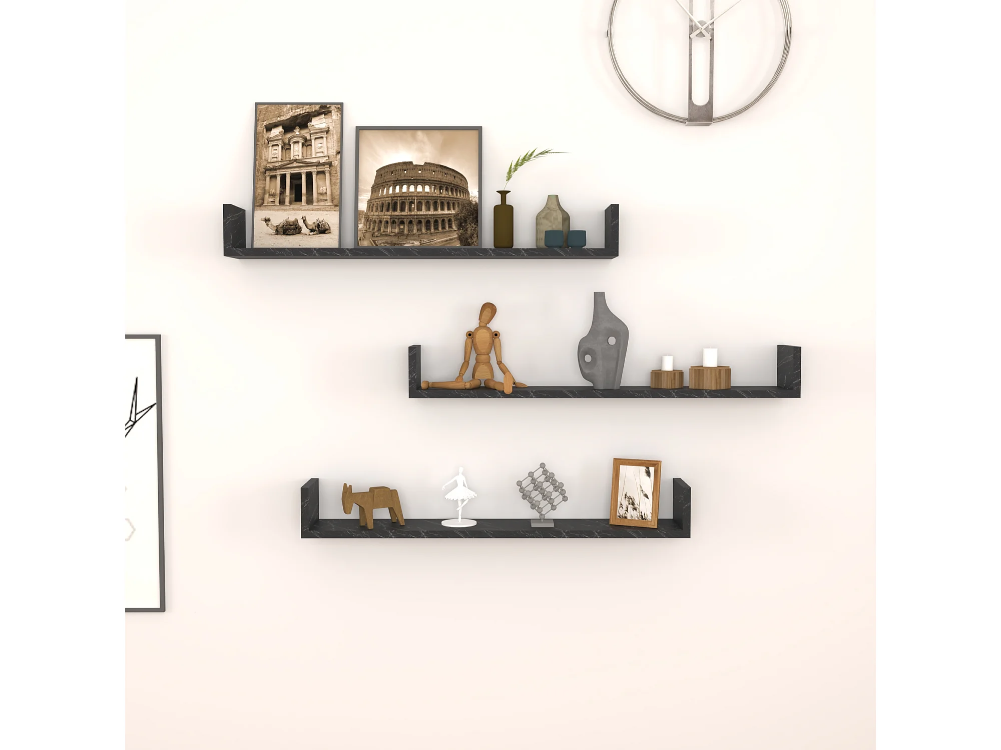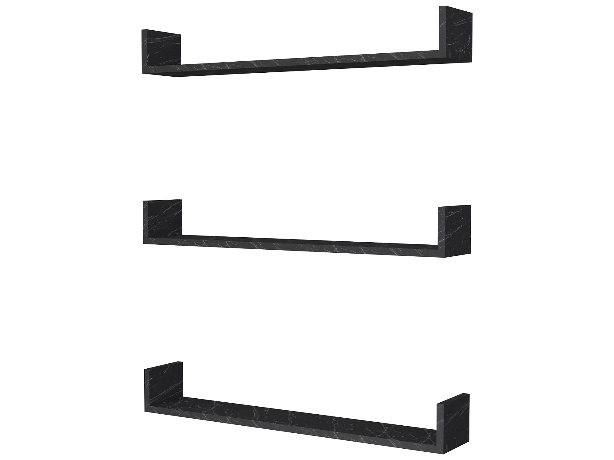 Lot de 3 étagères murales Höganäs 12 x 90 x 15 cm marbre noir [en.casa]