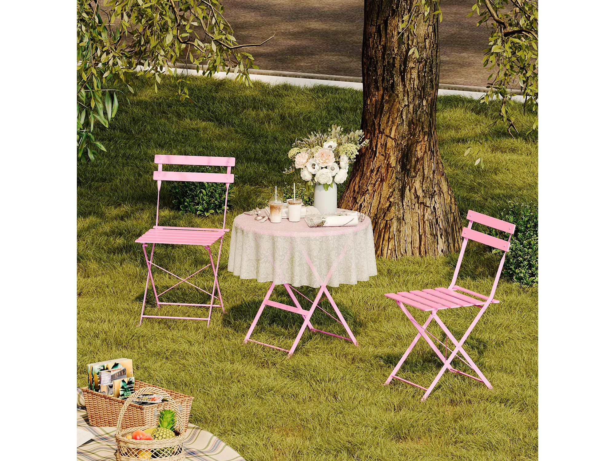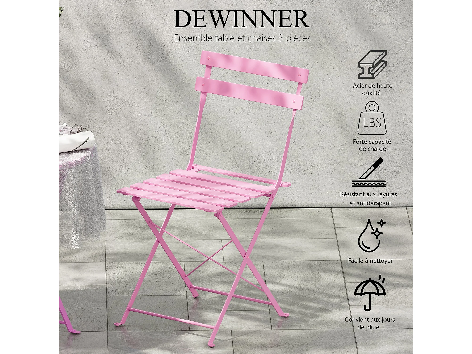 Ensemble table de jardin carrée et 2 fauteuils acier Rose poudré - Palavas
