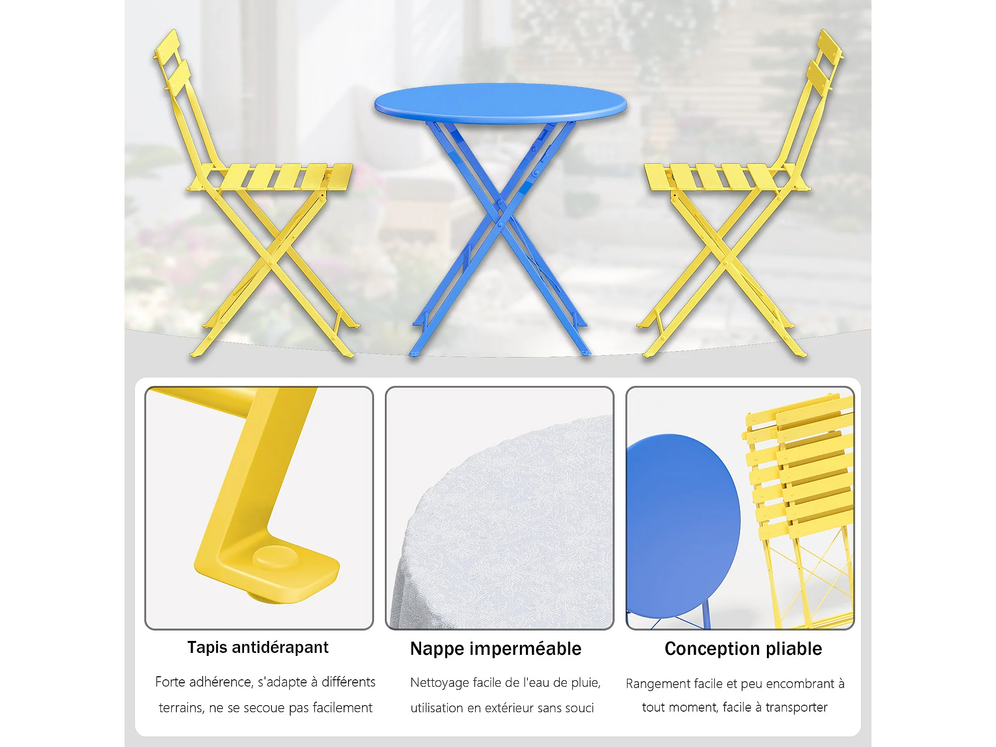 Lot de 3 Meubles de Jardin de Balcon, Table et chaises Pliable, Bistrot Bar Salon de Jardin Exterieur 2 Personnes
