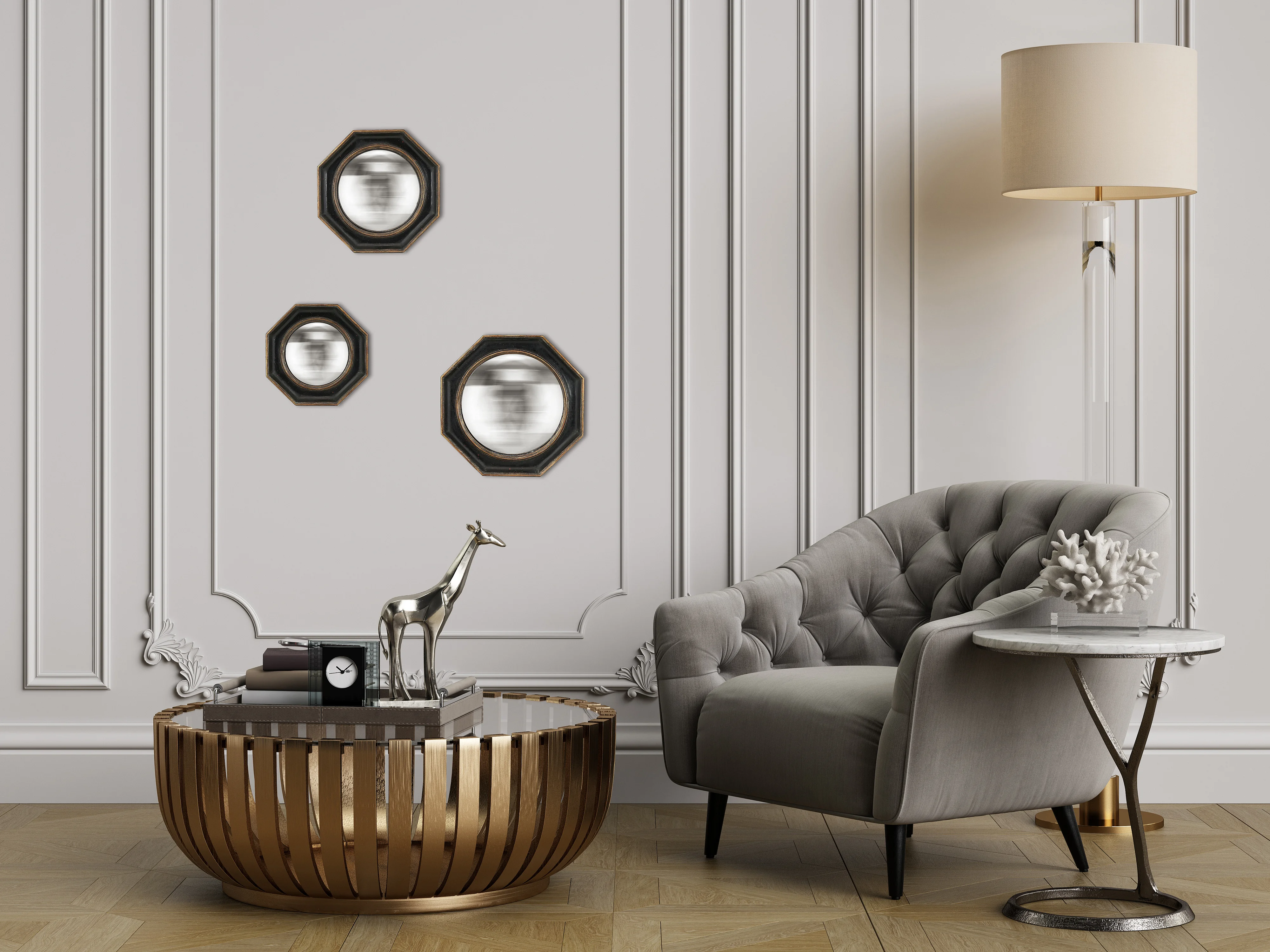 Lot de 3 miroirs convexes hexagonaux 17, 19 et 22cm