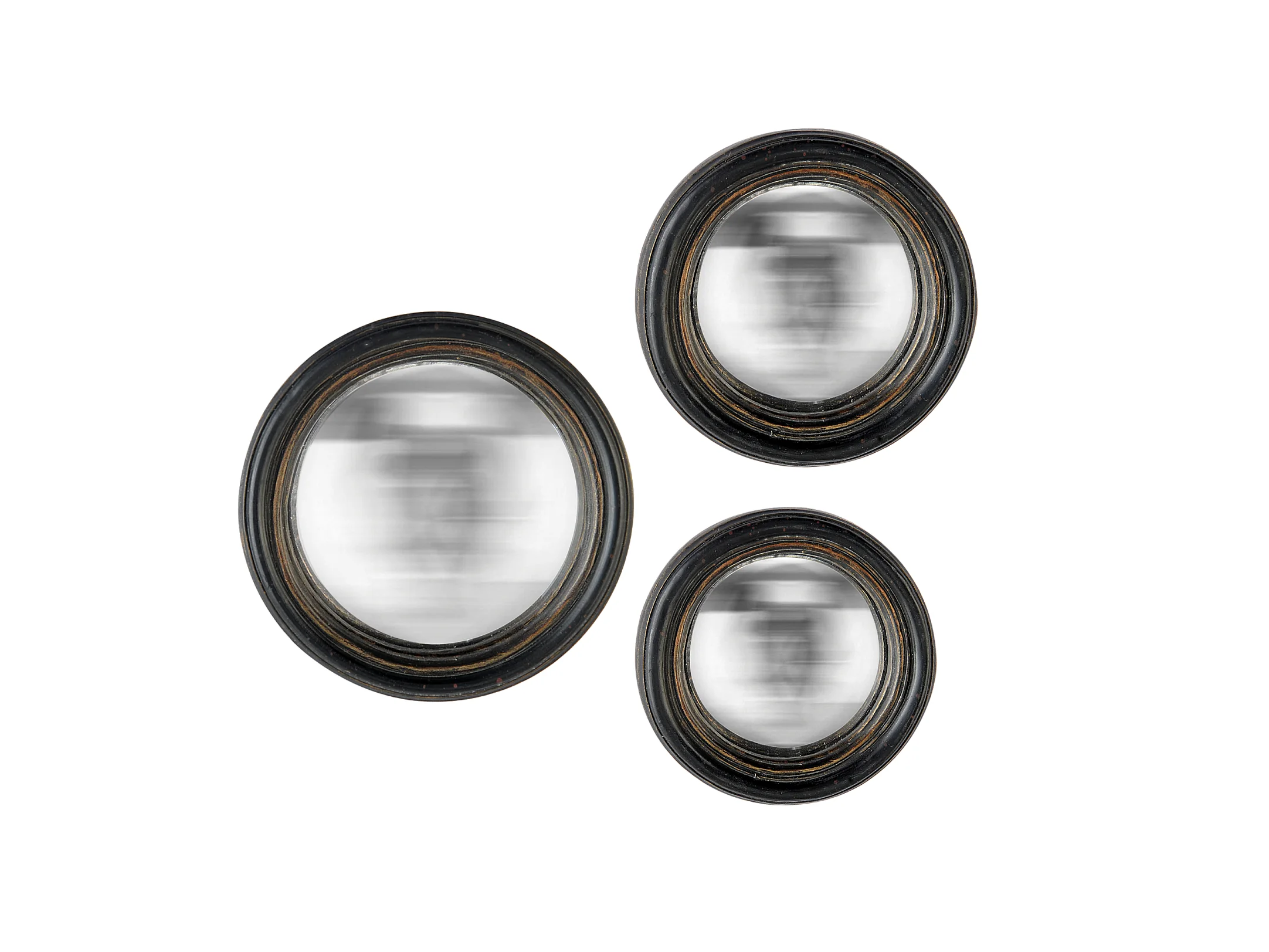 Lot de 3 miroirs ronds convexes noirs 16, 19, 23cm