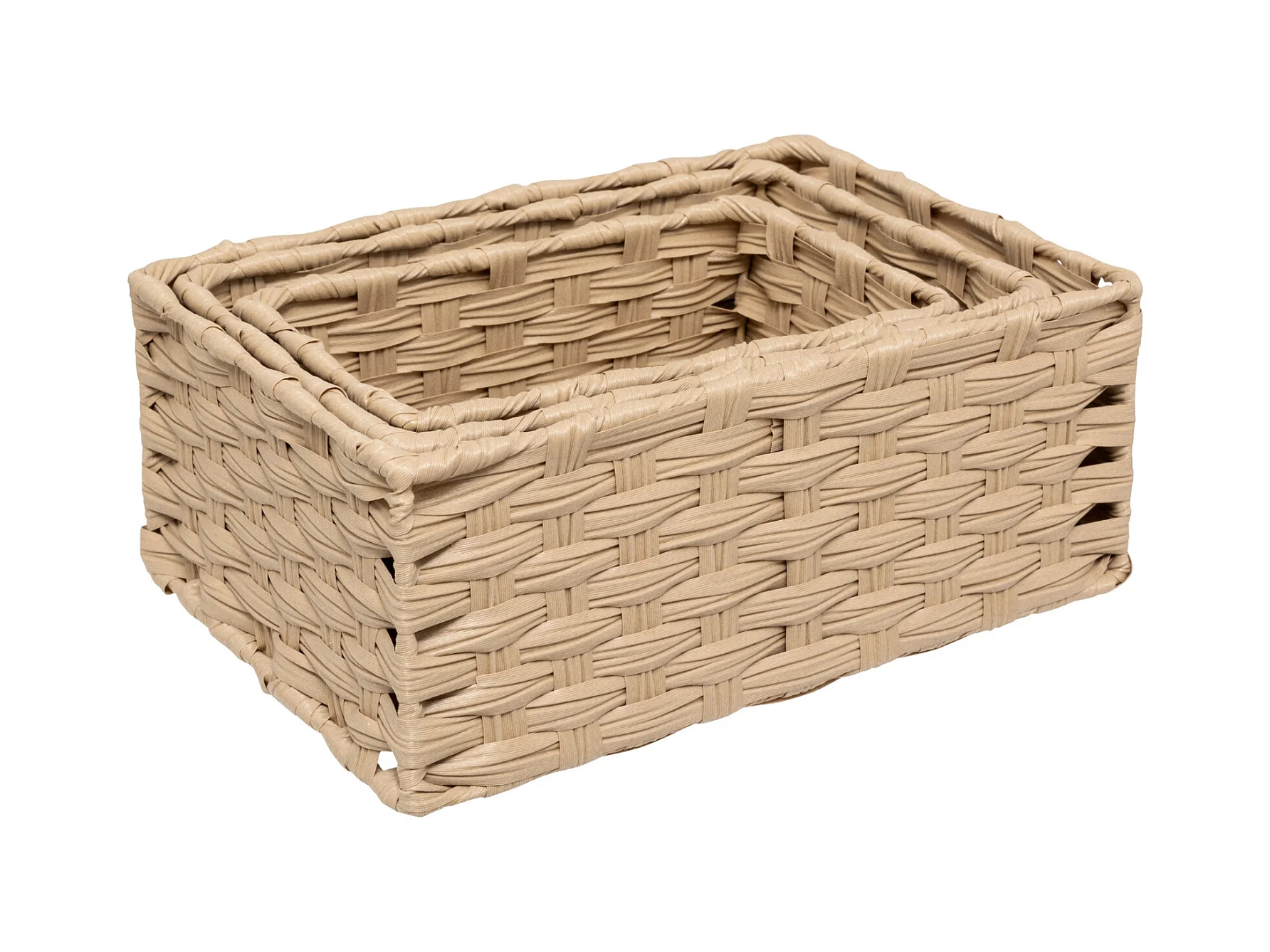 Lot de 3 Paniers de Rangement Hauts "Tressé" 30cm Naturel