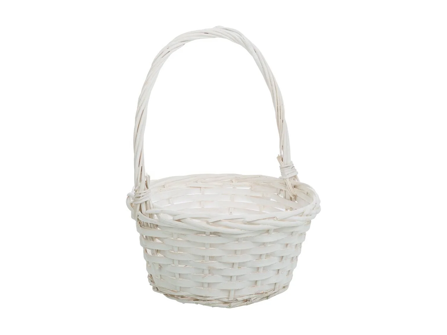 Panier naturel avec anses, peinture blanche, D40x36/48h cm