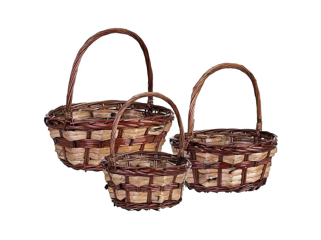 Lot de 3 paniers en osier marron 34x34x15h/37hh - 28x28x14h/32hh - 23x23x12h/28hh