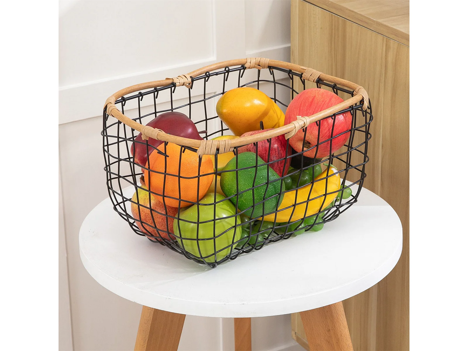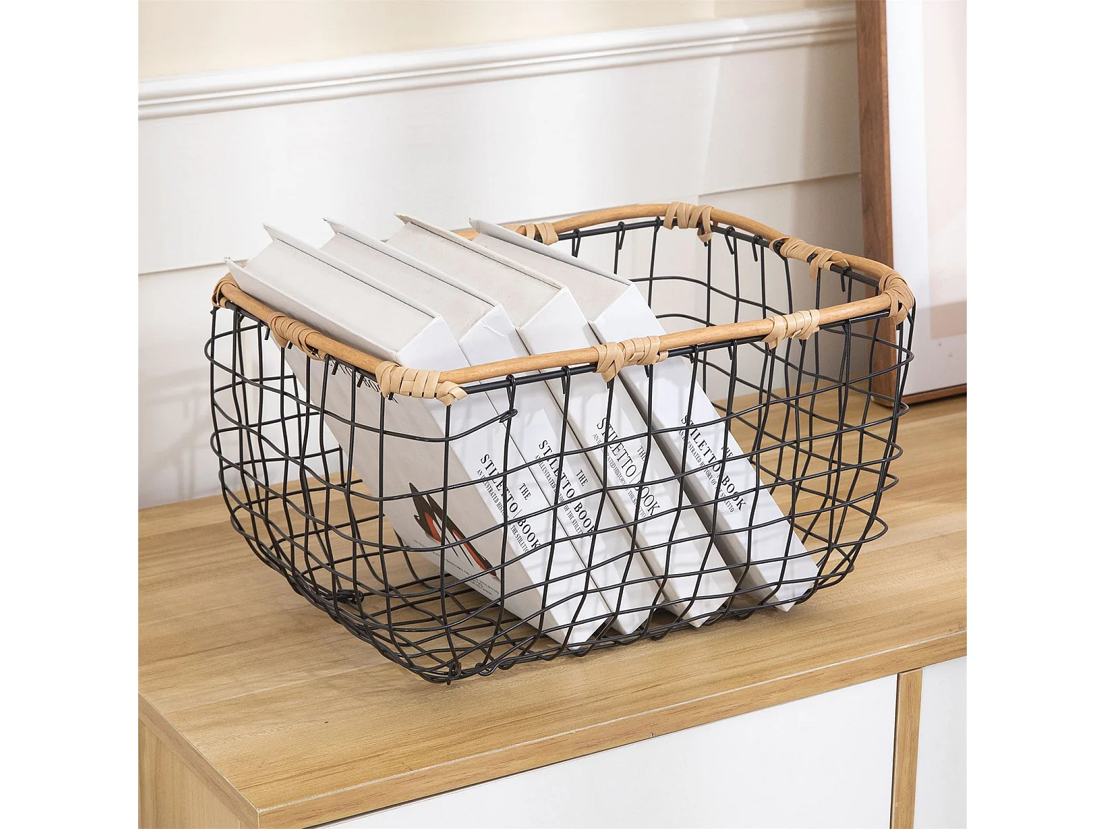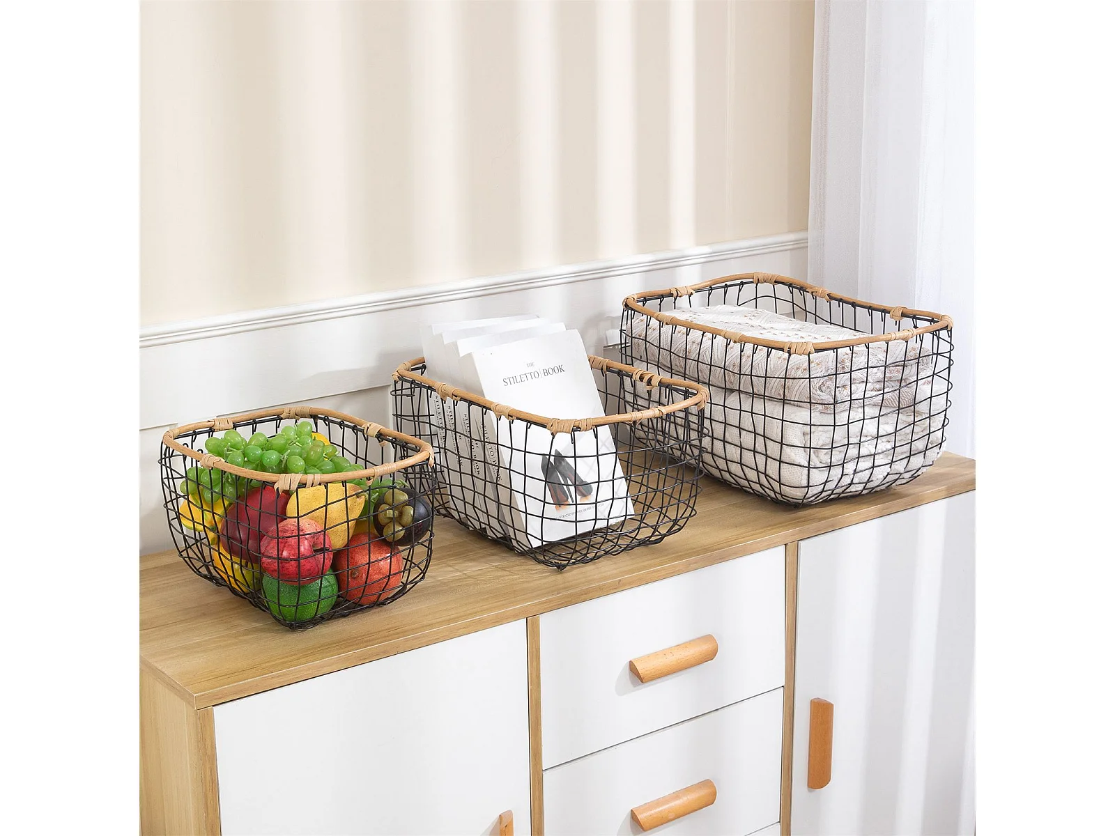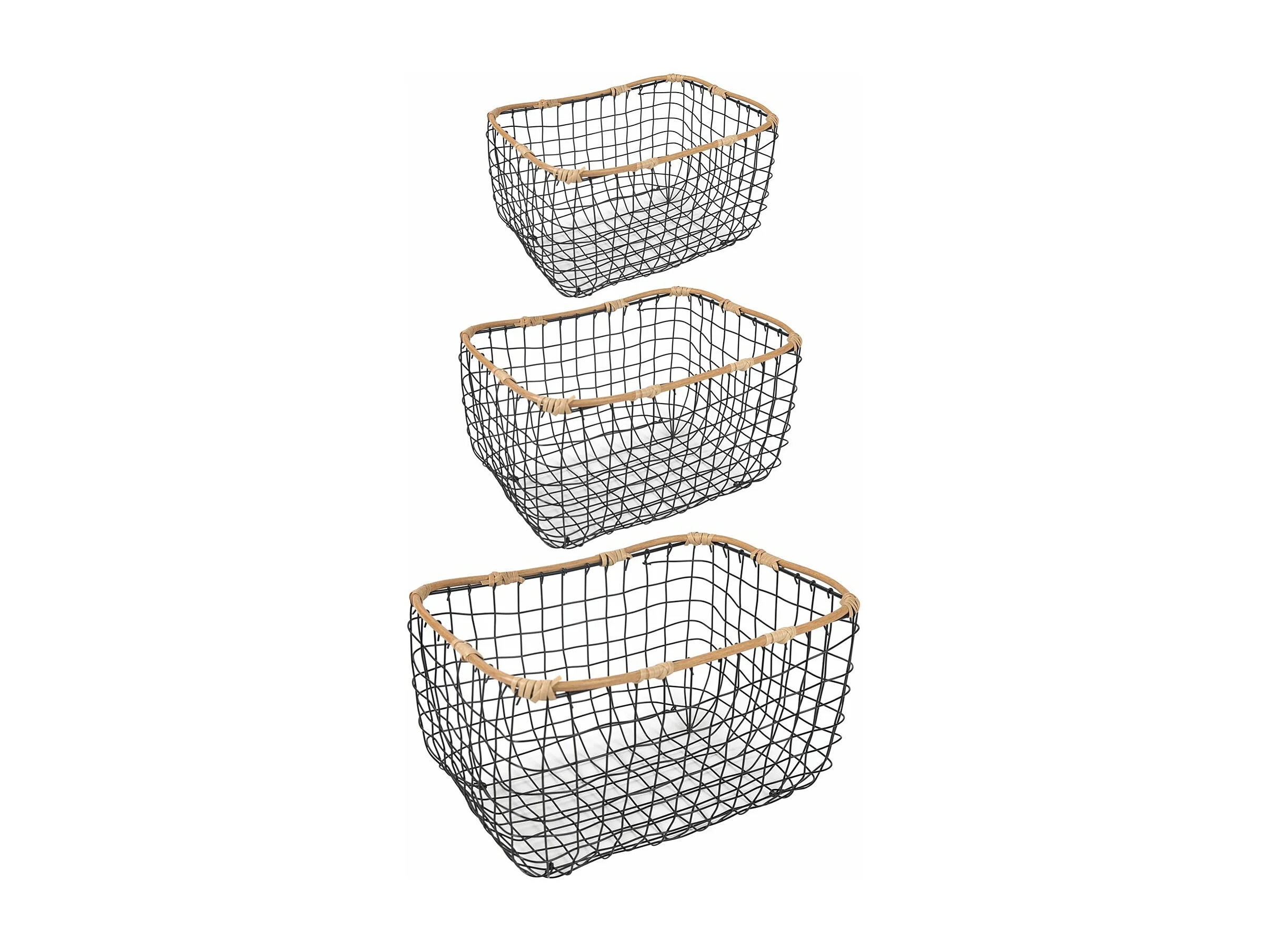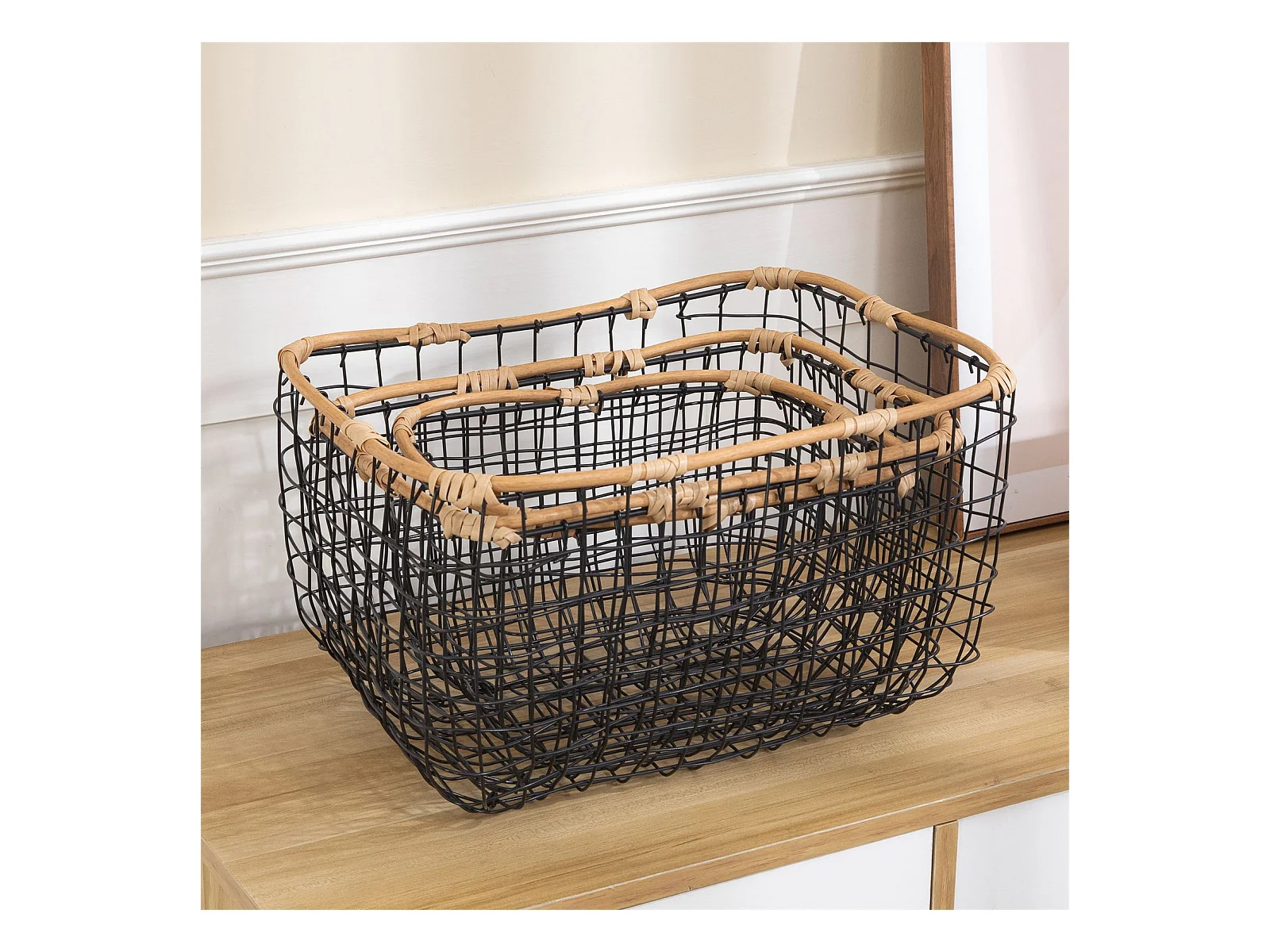 Lot de 3 paniers JIMO corbeilles retangulaires de tailles différentes, en métal noir et rotin synthétique
