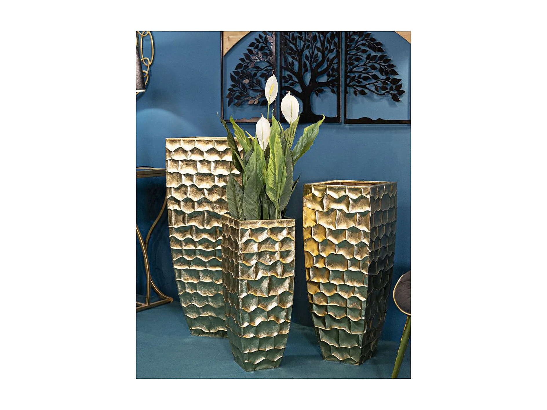 Lot de 3 Pots Décoratifs MF421, Or, 38x38x94 cm, Seven Design