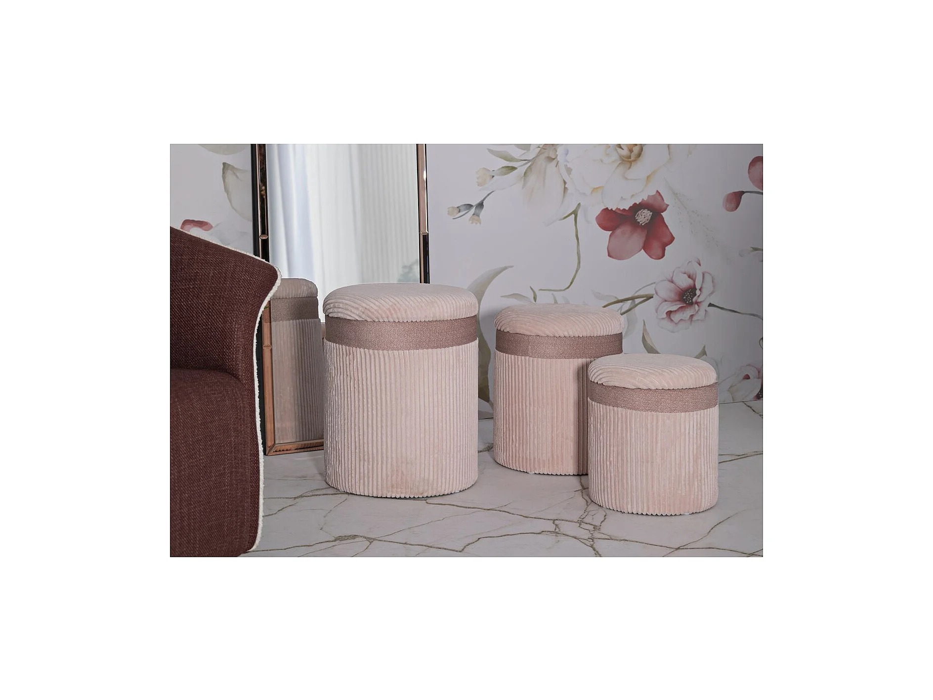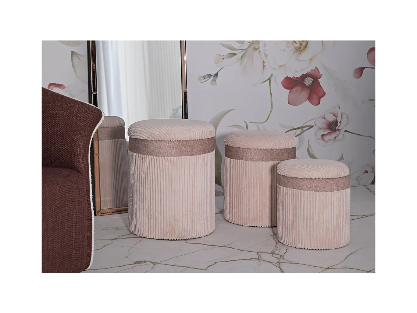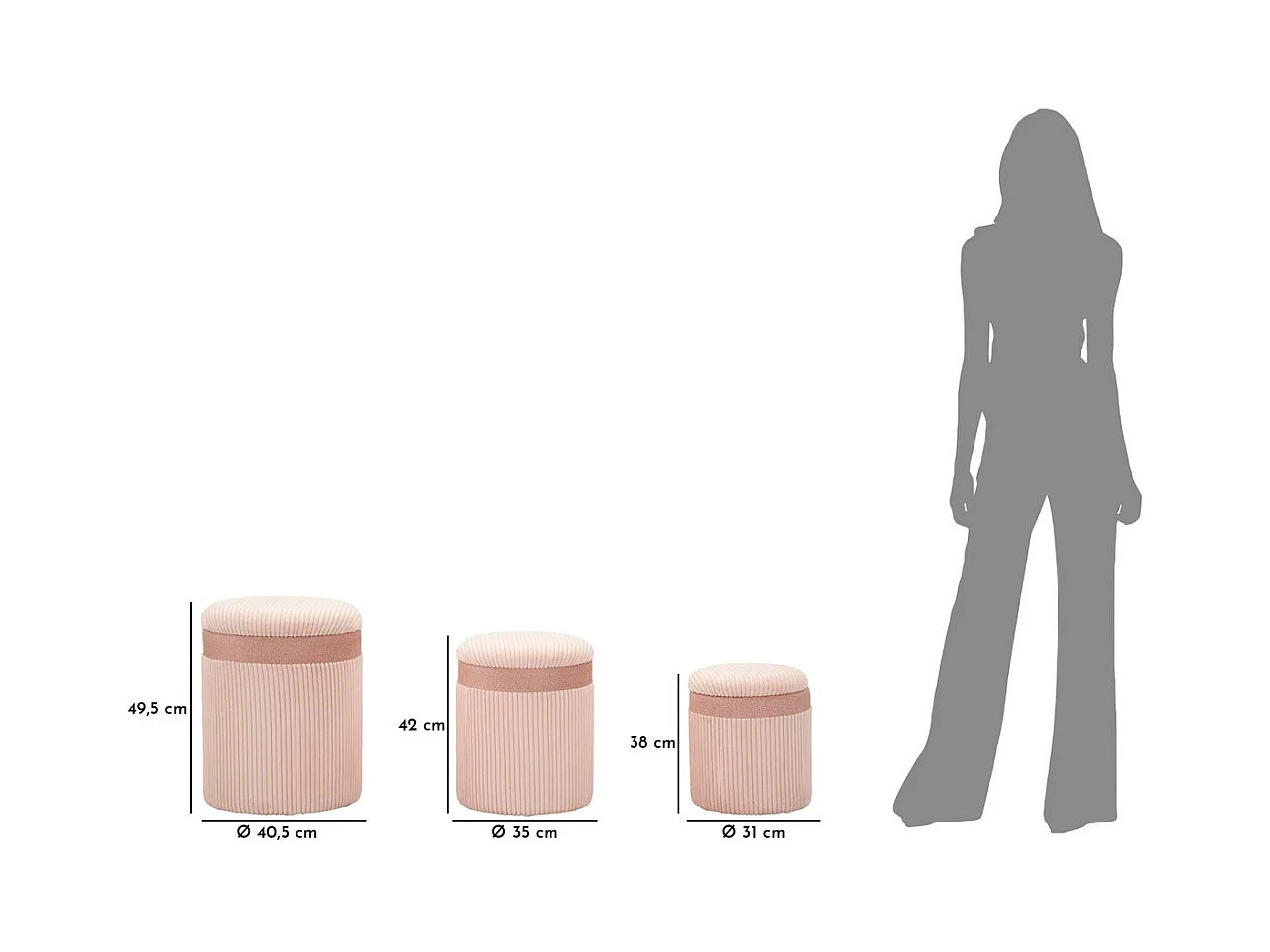 Lot de 3 Poufs MF769, Rose, 40,5x40,5x49,5 cm, Seven Design