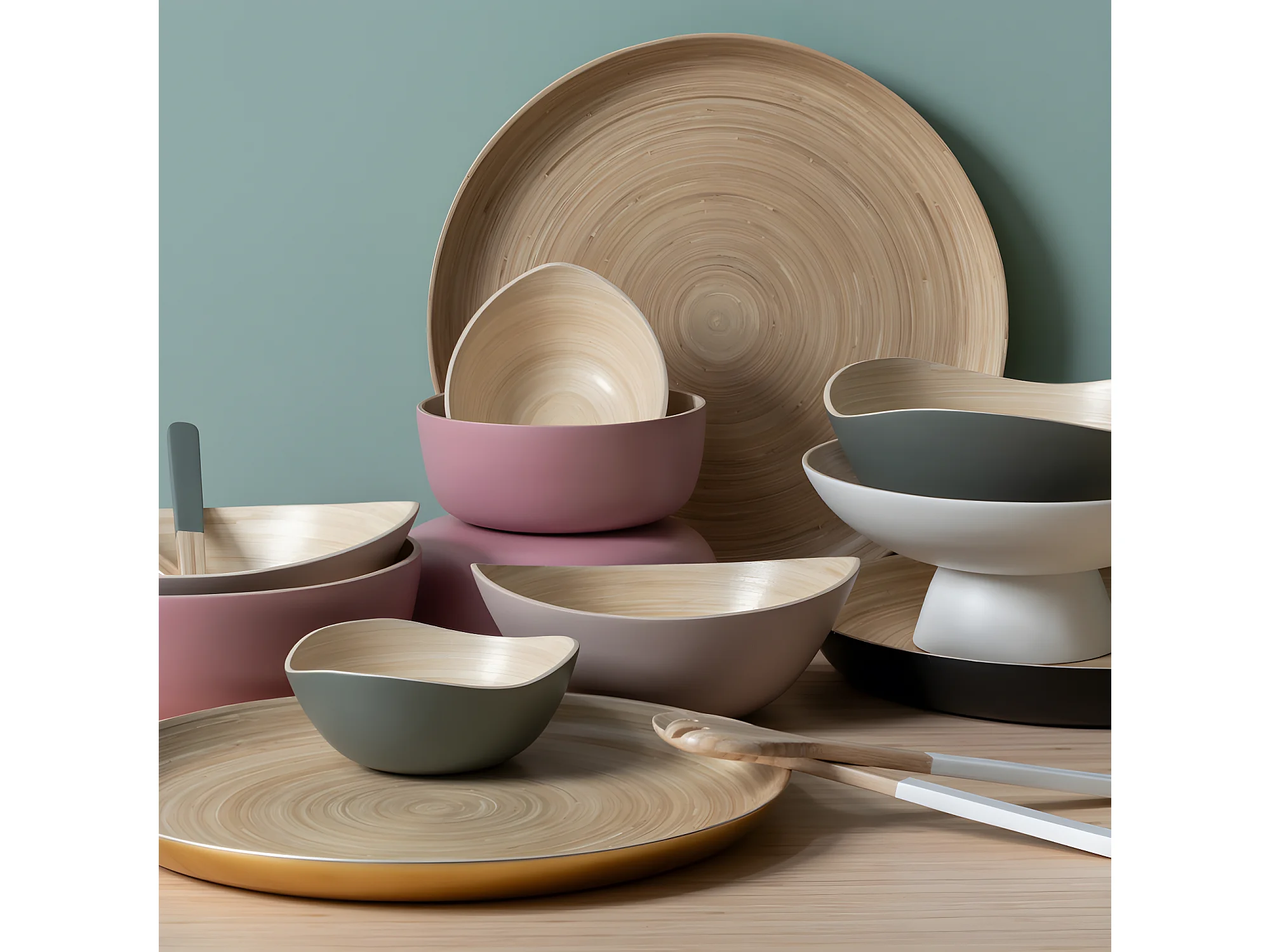 Lot de 3 saladiers rond en bambou Vert Present Time