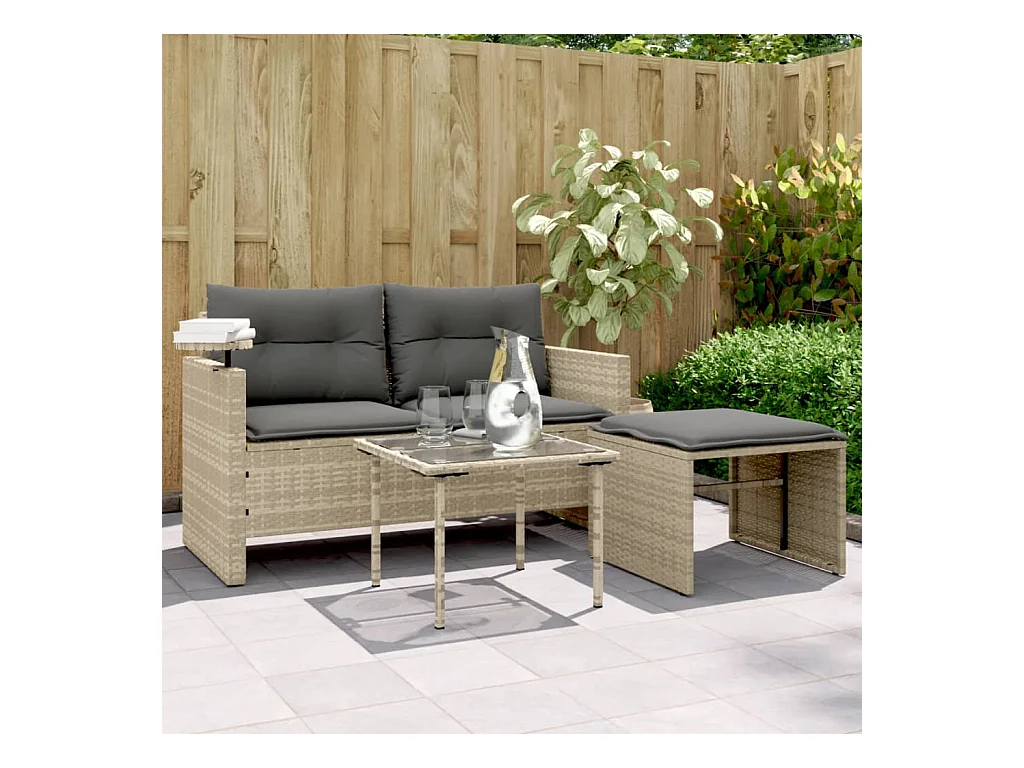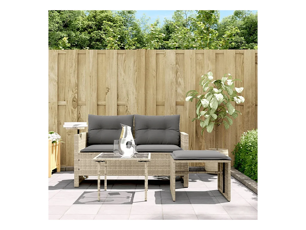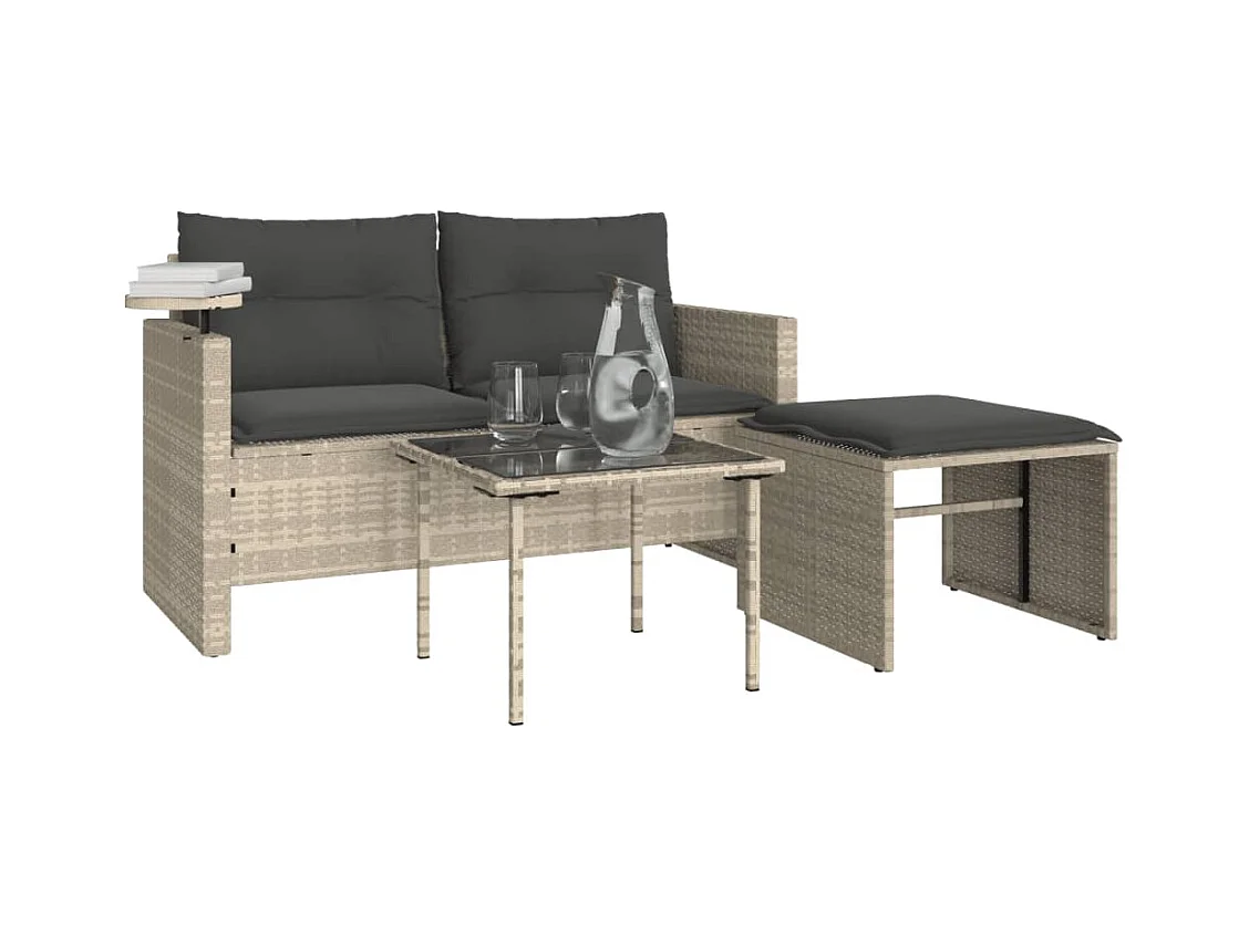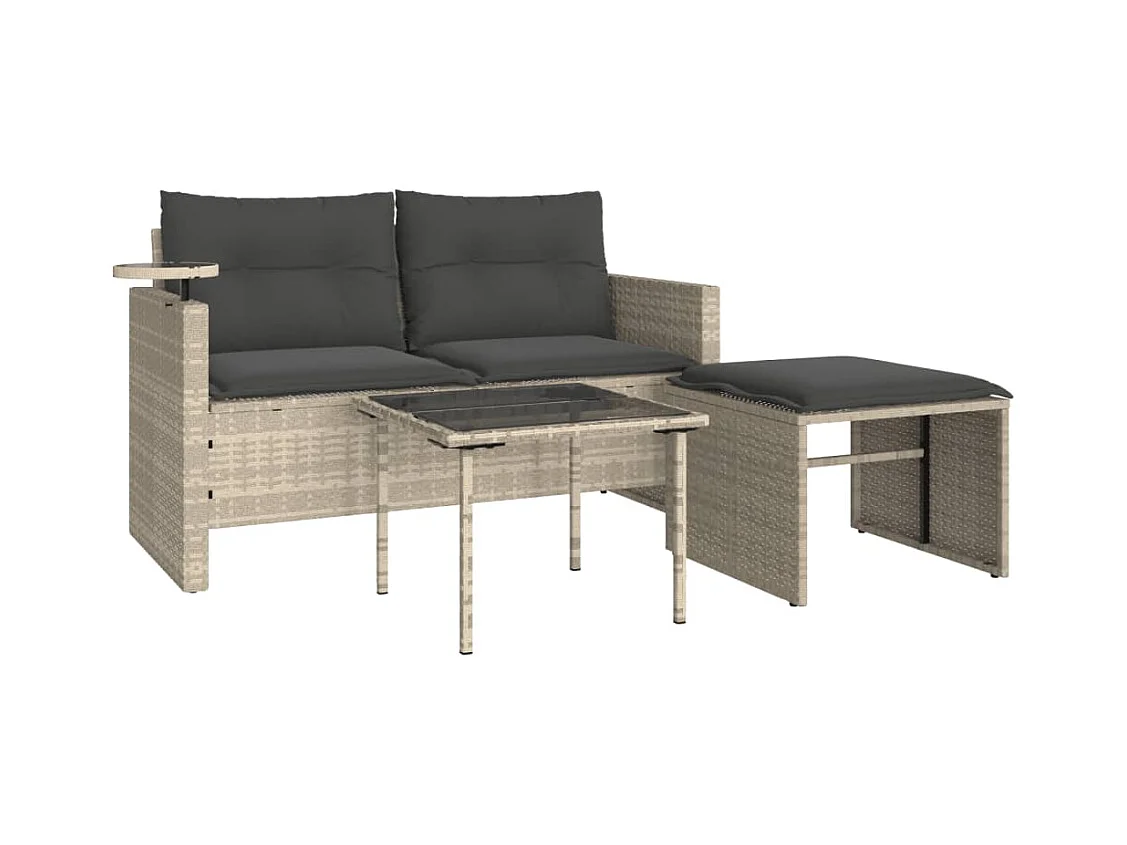 Lot de 3 Salon de jardin avec coussins gris clair résine tressée FR131048 FR125595