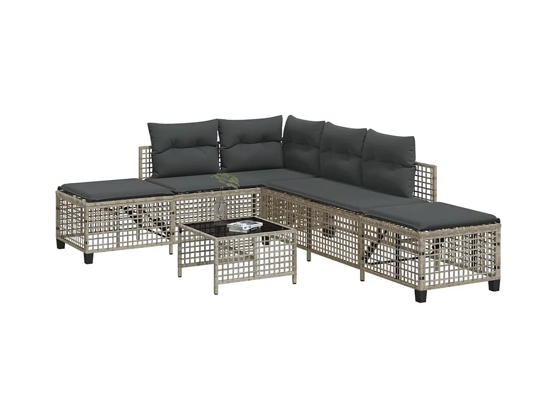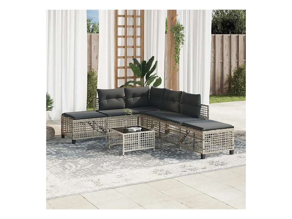 Lot de 3 Salon de jardin d'angle avec coussins gris clair rotin FR617492 FR859347
