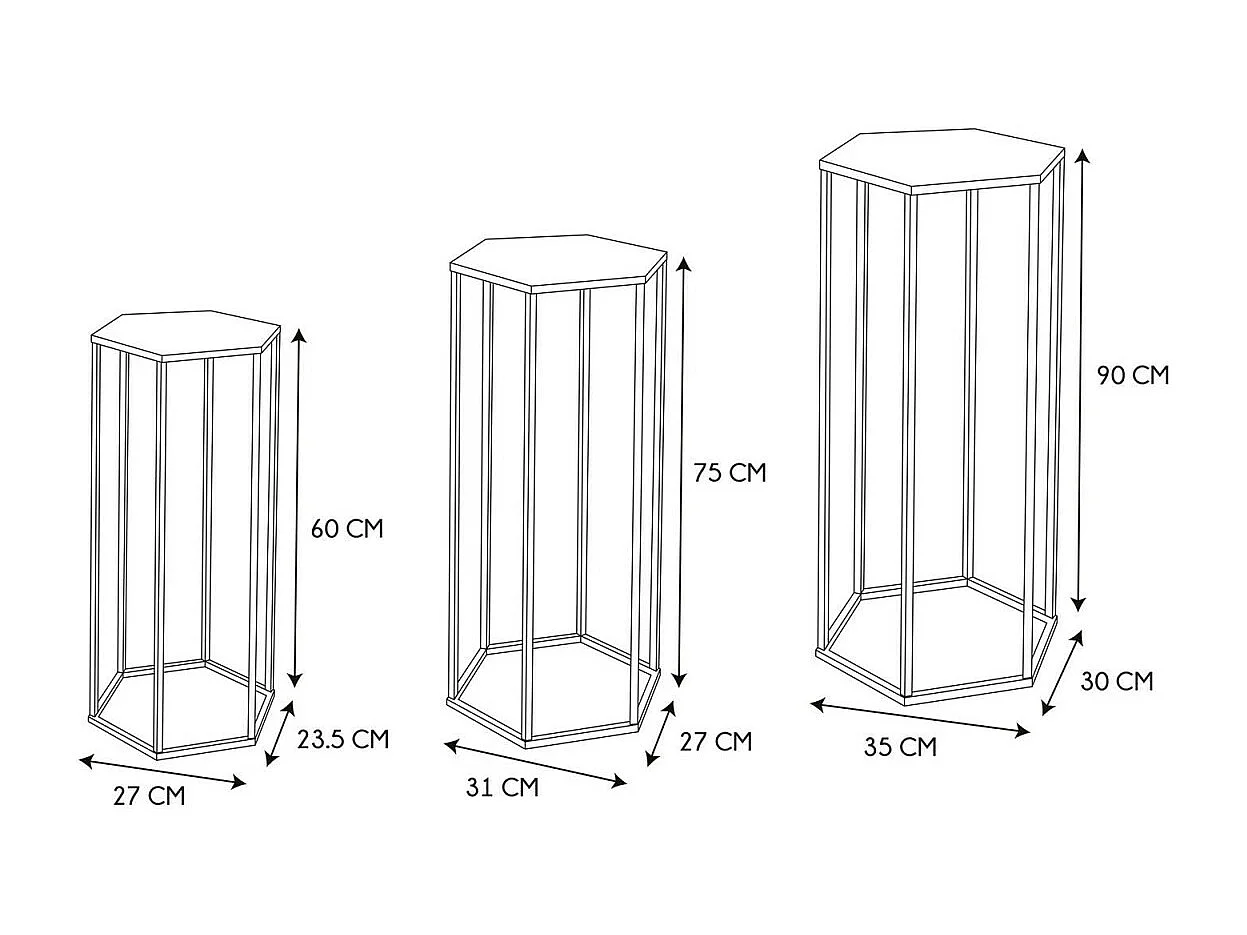 Lot de 3 Sellettes Gigognes "Métal" 90cm Noir