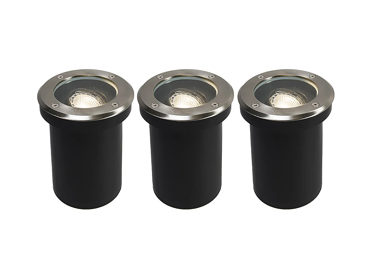 Lot de 3 spots de sol extérieurs acier orientables IP65 - Delux