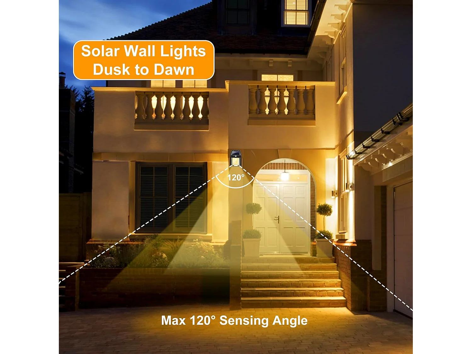 Lampes solaires d'extérieur NETTLIFE - Applique murale solaire d'extérieur, appliques murales d'extérieur à LED 3 000 K, blanc chaud, 2 modes