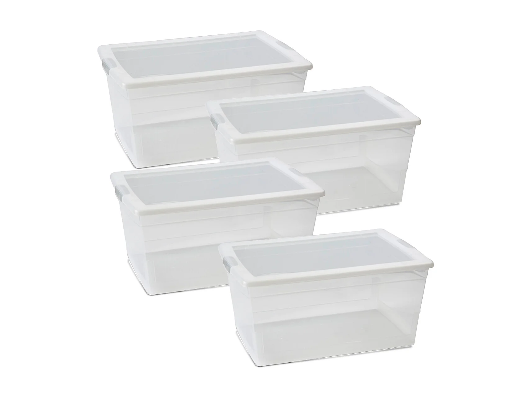 Boîte de rangement en polypropylène transparent 100L fermeture à clip et roues