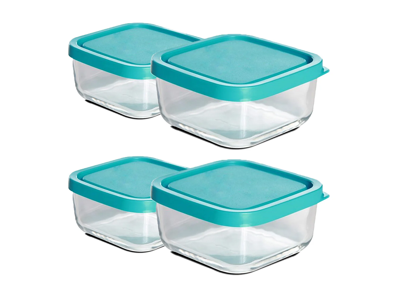 Lot de 4 boîtes de conservation avec couvercle hermétique frigoverre - Longueur 22 x Profondeur 22 x Hauteur 9.4 cm