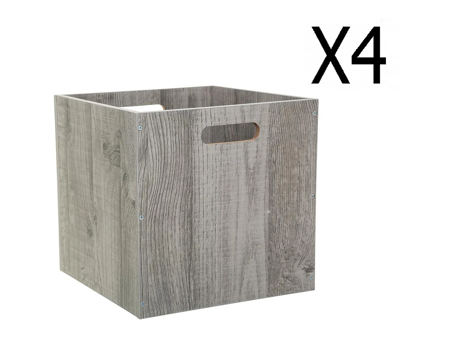 Lot de 4 Boites de rangement en bois Gris - L. 30.5 x P. 30.5 x H. 30.5 cm