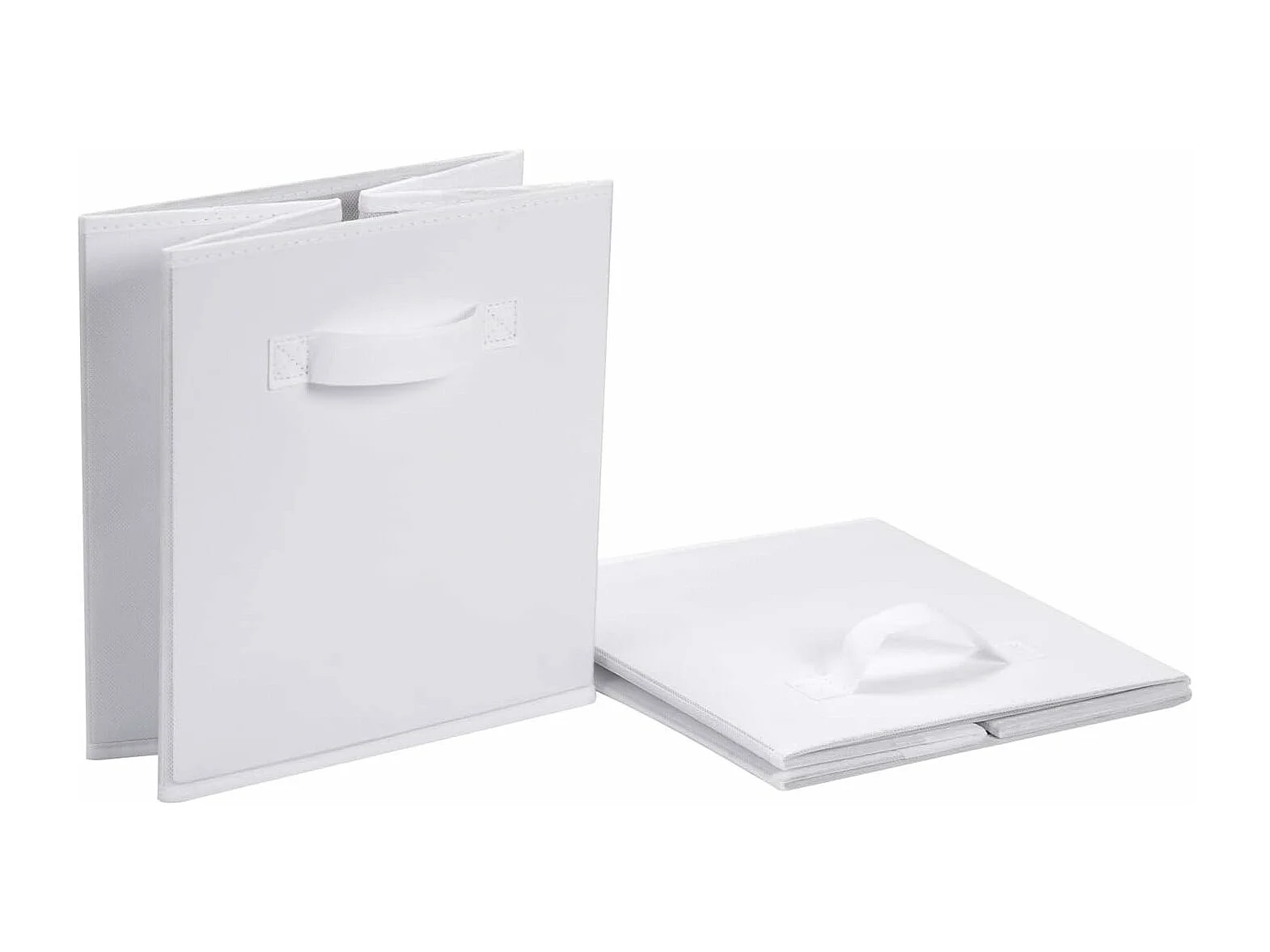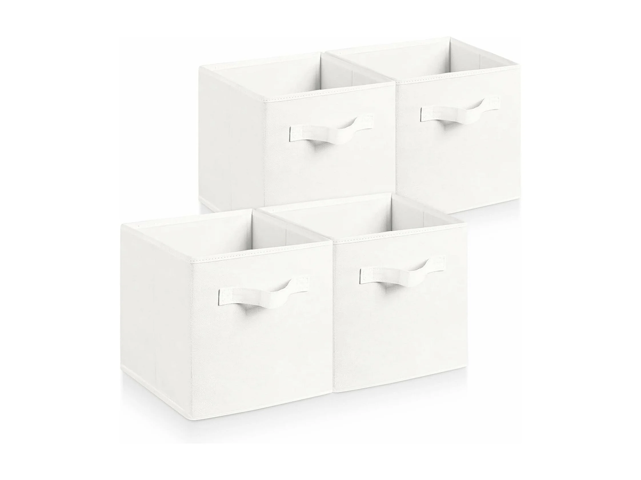 Lot de 4 Boîtes de Rangement en Toile Pliable, non tissée, Paniers de Rangement avec Poignées, 27 x 27 x 28 cm-pour vêtements, livres, jouets (Blanc)