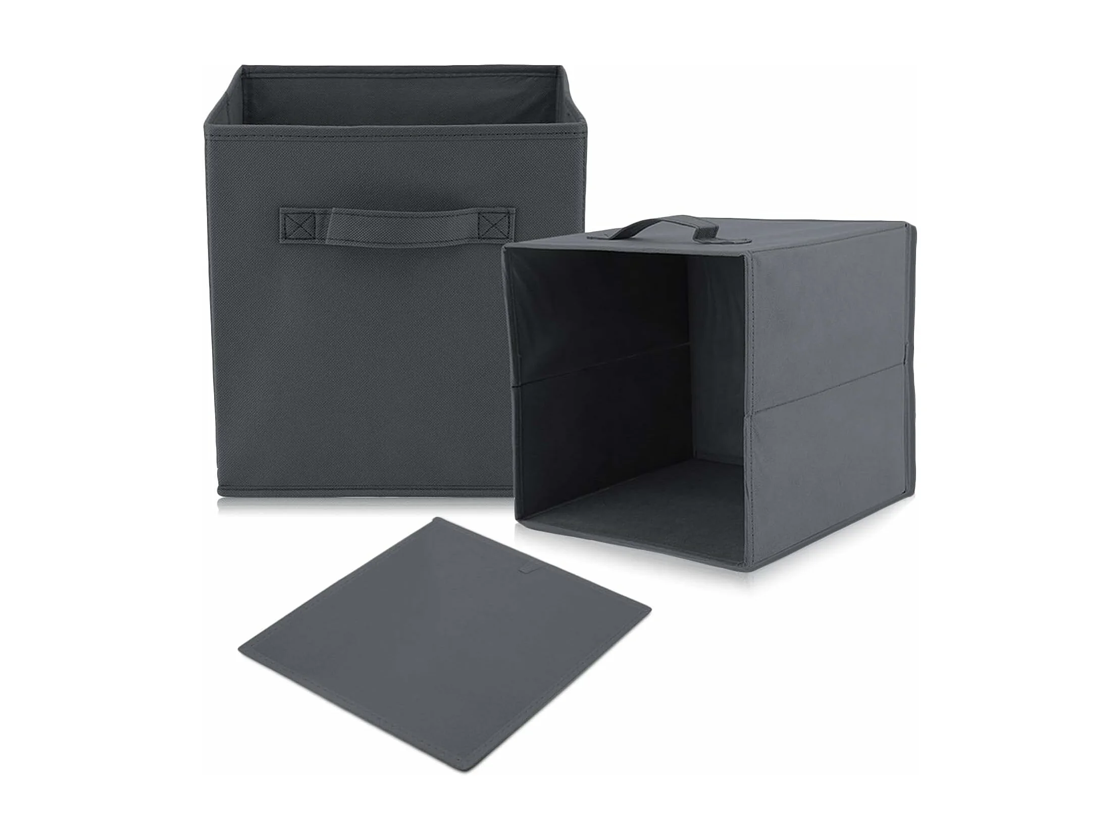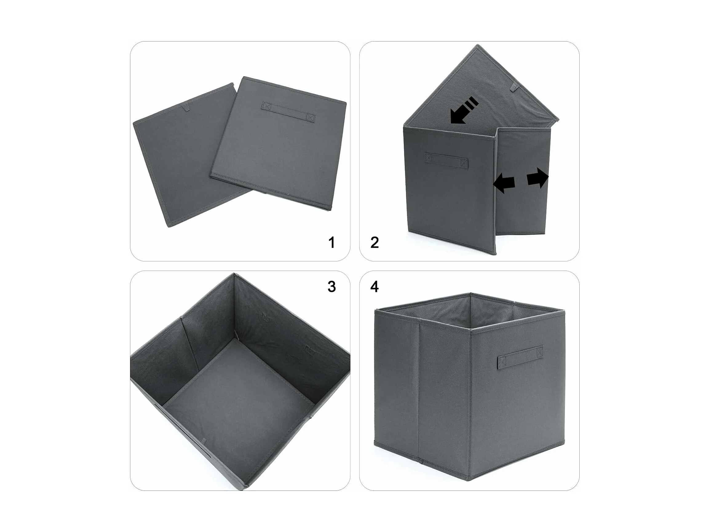 Lot de 4 Boîtes de Rangement en Toile Pliable, non tissée, Paniers de Rangement avec Poignées, 27 x 27 x 28 cm-pour vêtements, livres, jouets (Noir)