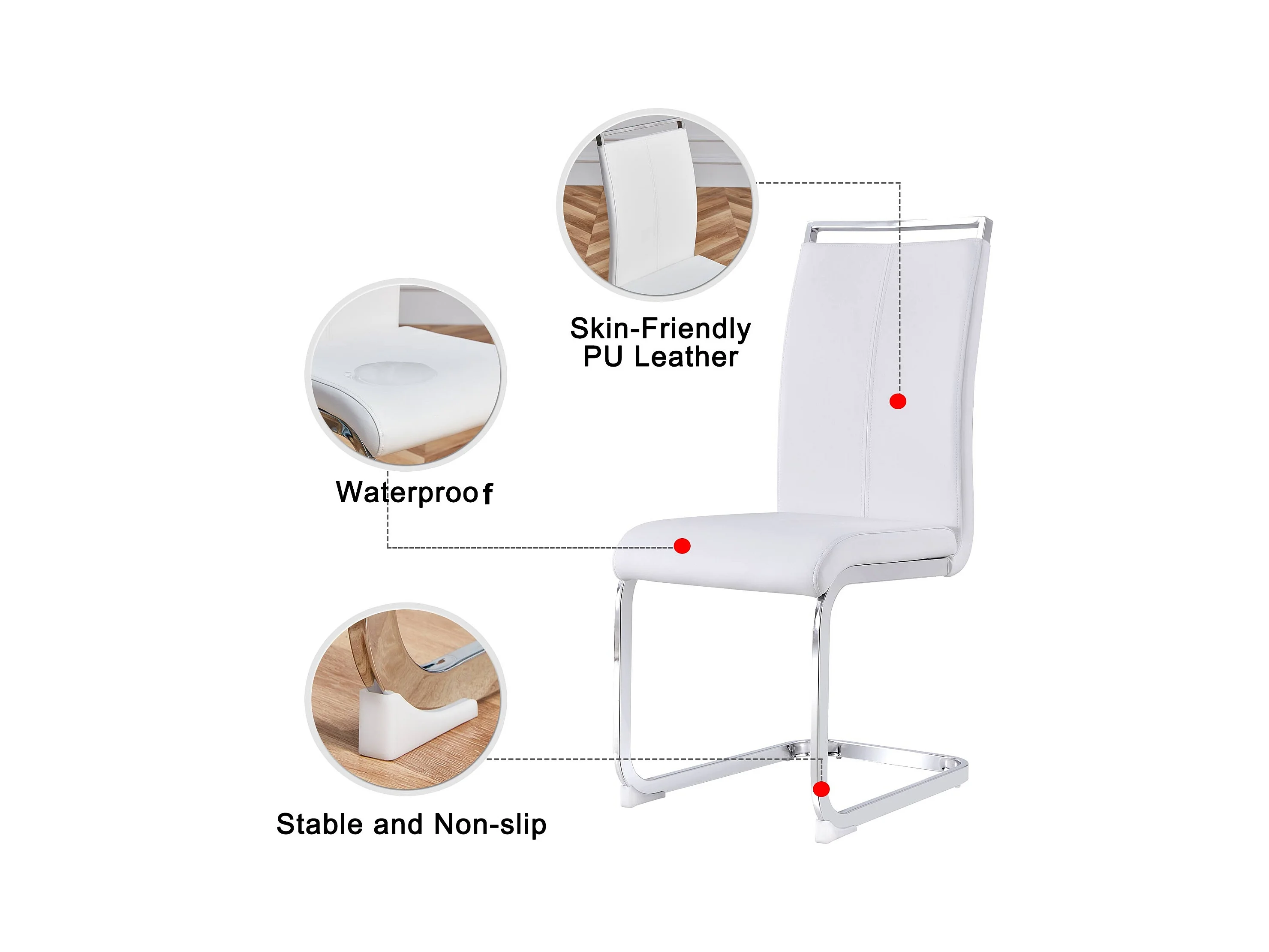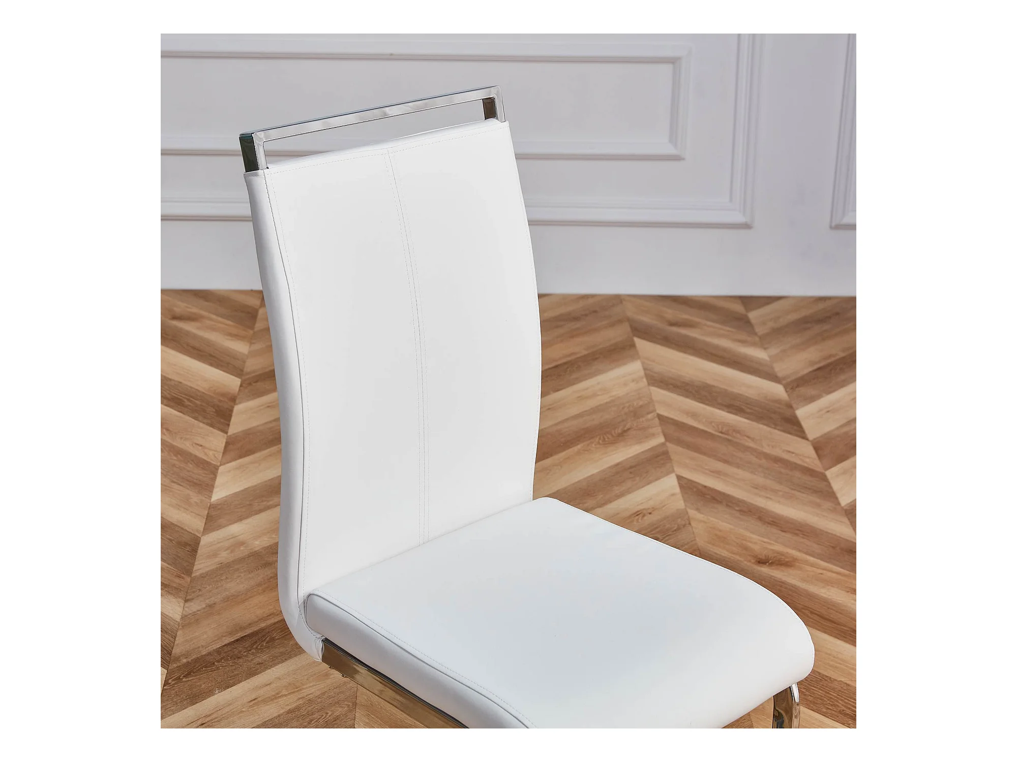 Lot de 4 Chaises cantilever Structure métallique chromée Rembourrage en Simili Cuir - Blanc