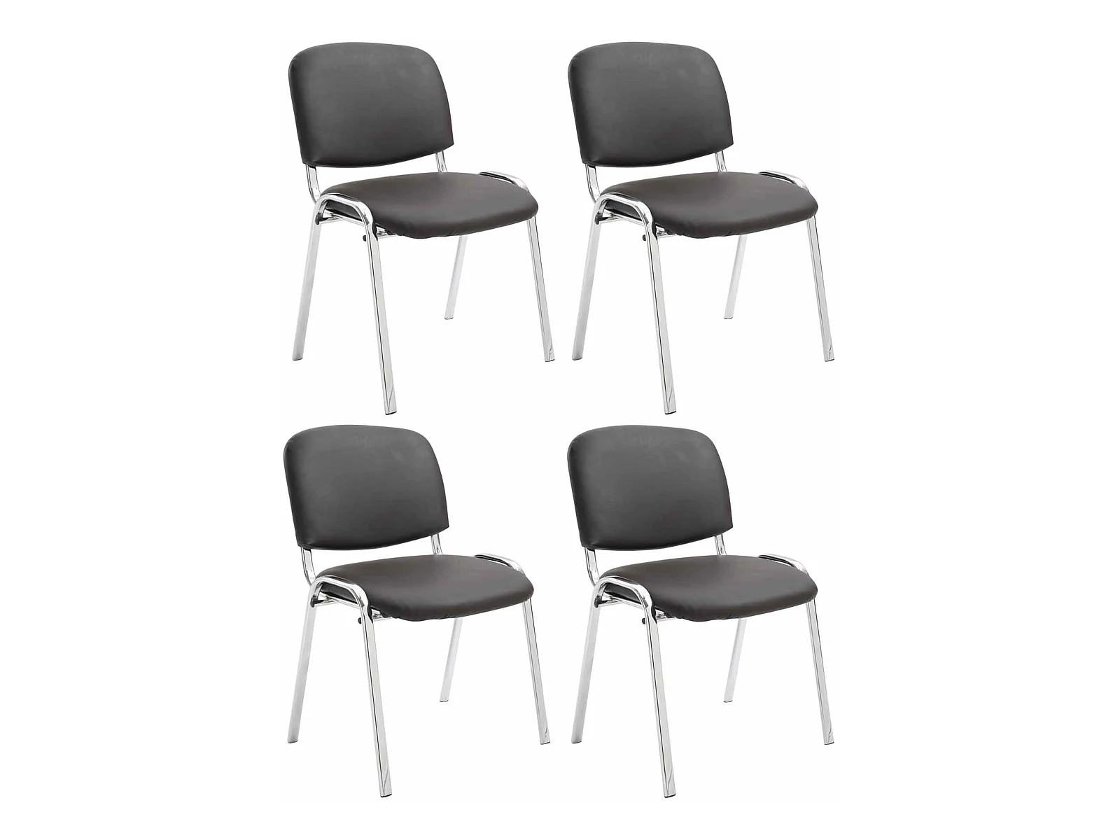 Lot de 4 Chaise de conférence - Similicuir & Métal chromé - Marron - Ken
