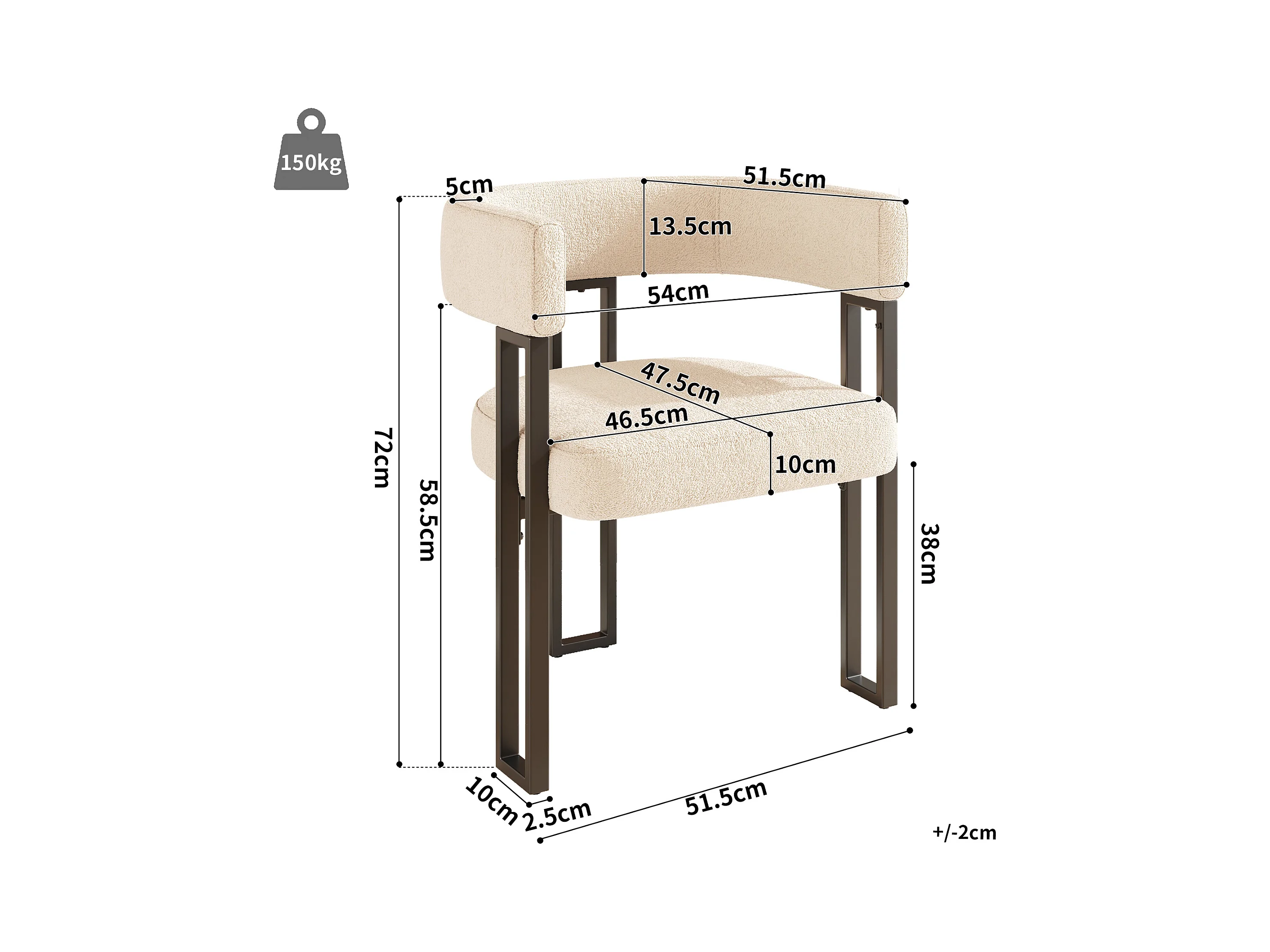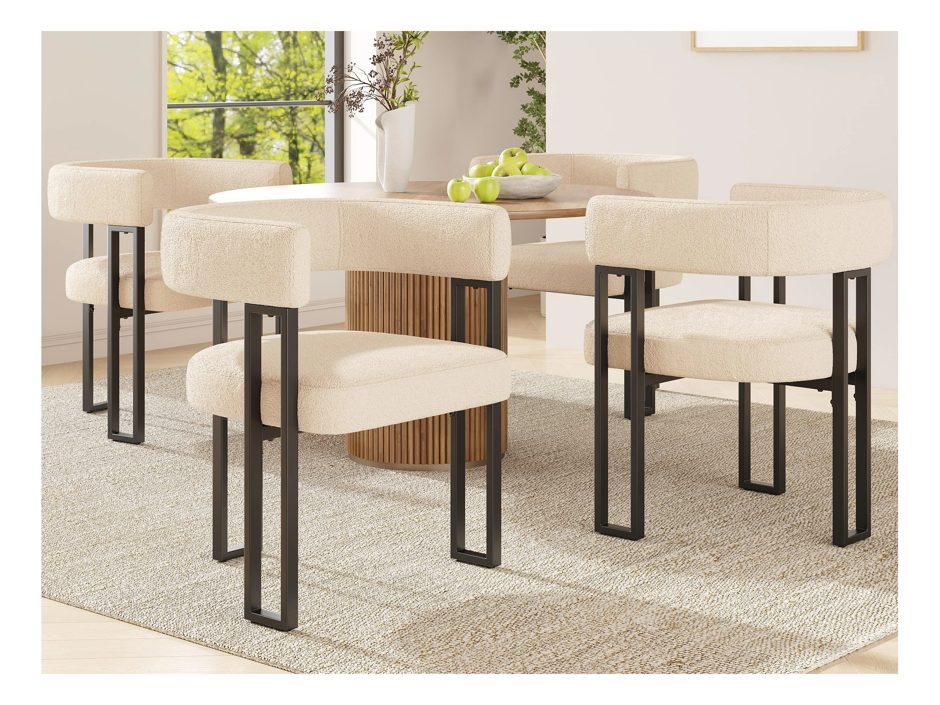 Lot de 4 Chaise de salle à manger rembourrées - en tissu en flanelle - structure en métal - beige