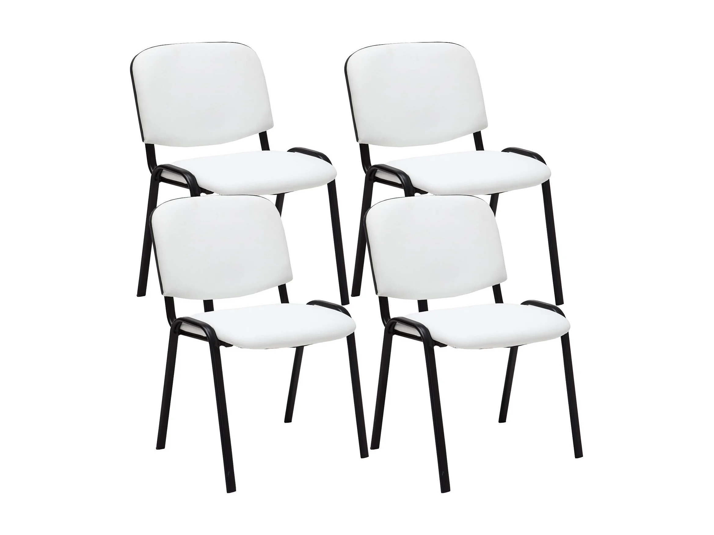 Lot de 4 Chaise de conférence - Similicuir & Noir - Blanc - Ken