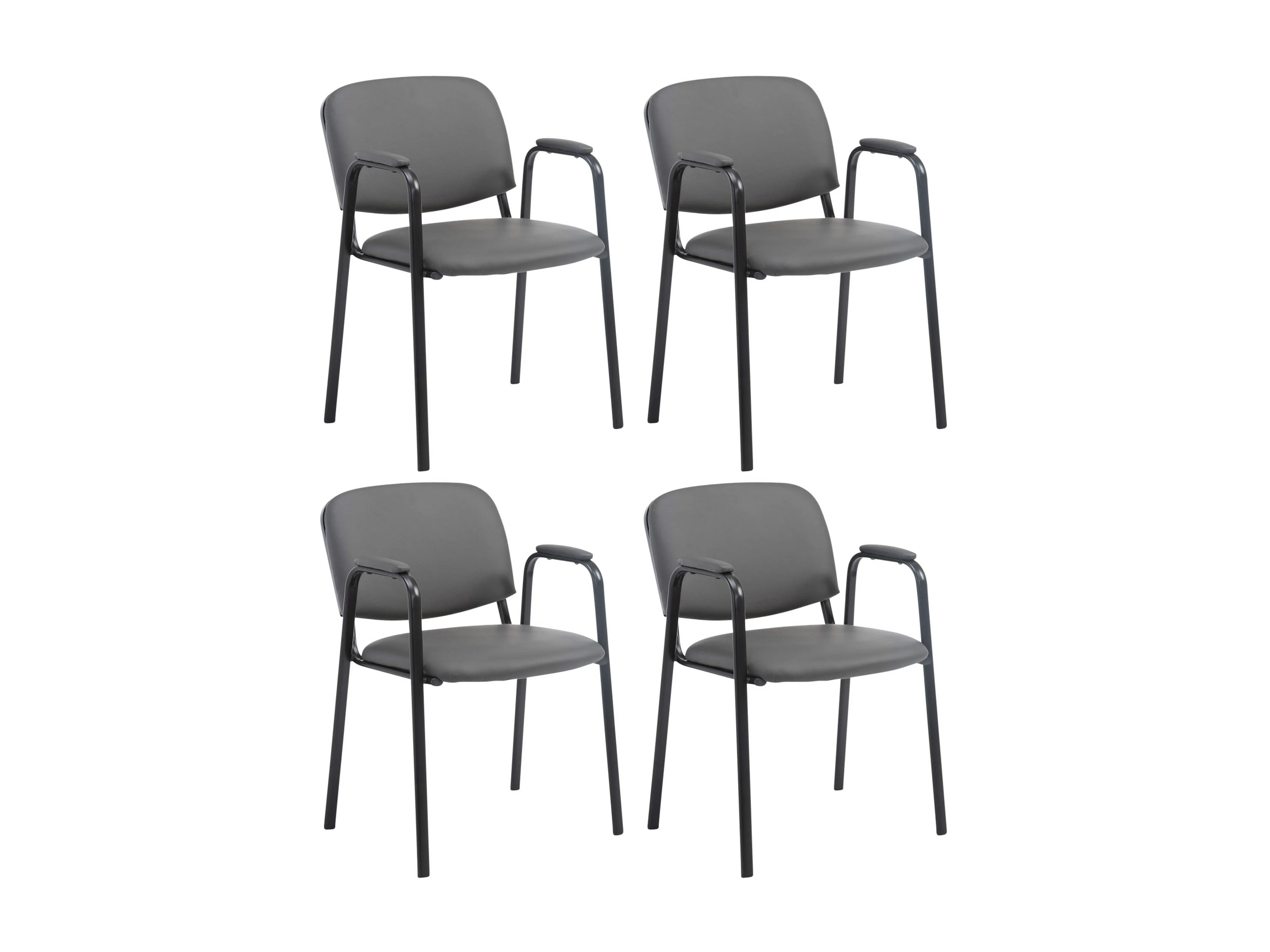 Lot de 4 Chaise de salle à manger - Similicuir & Métal noir mat - Gris - Ken Pro