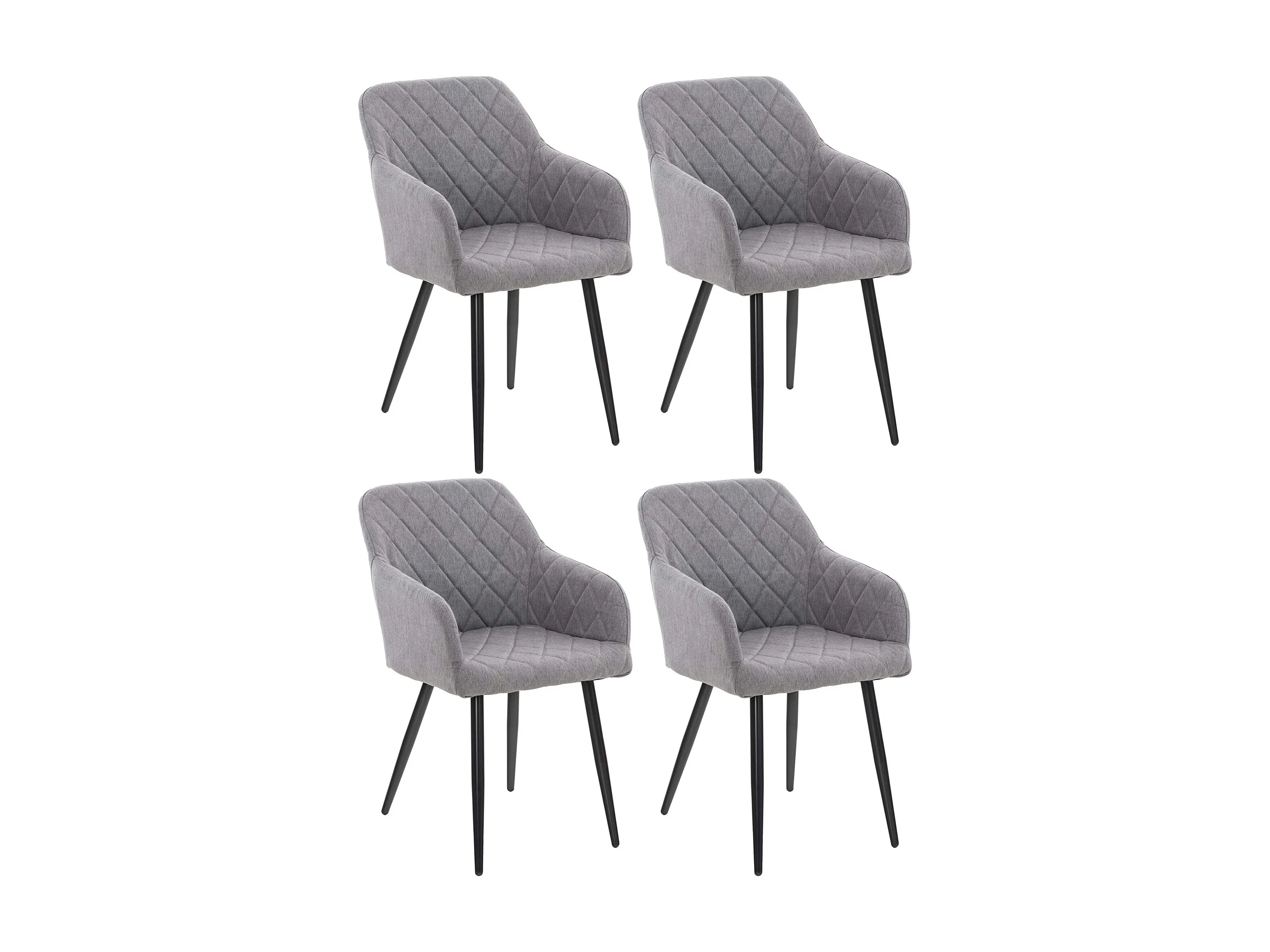 Lot de 4 chaises avec accoudoirs - Tissu - Gris - Shila