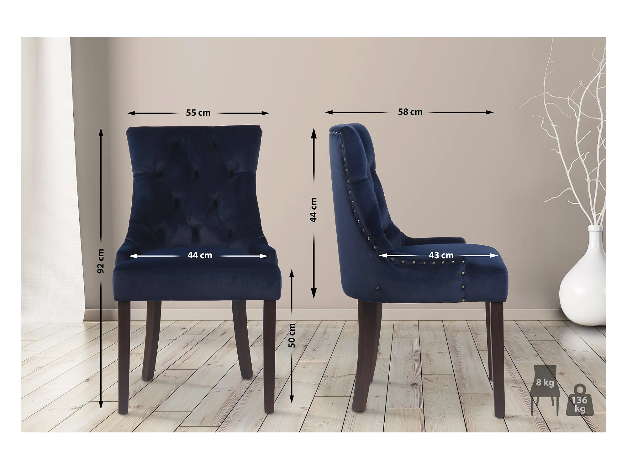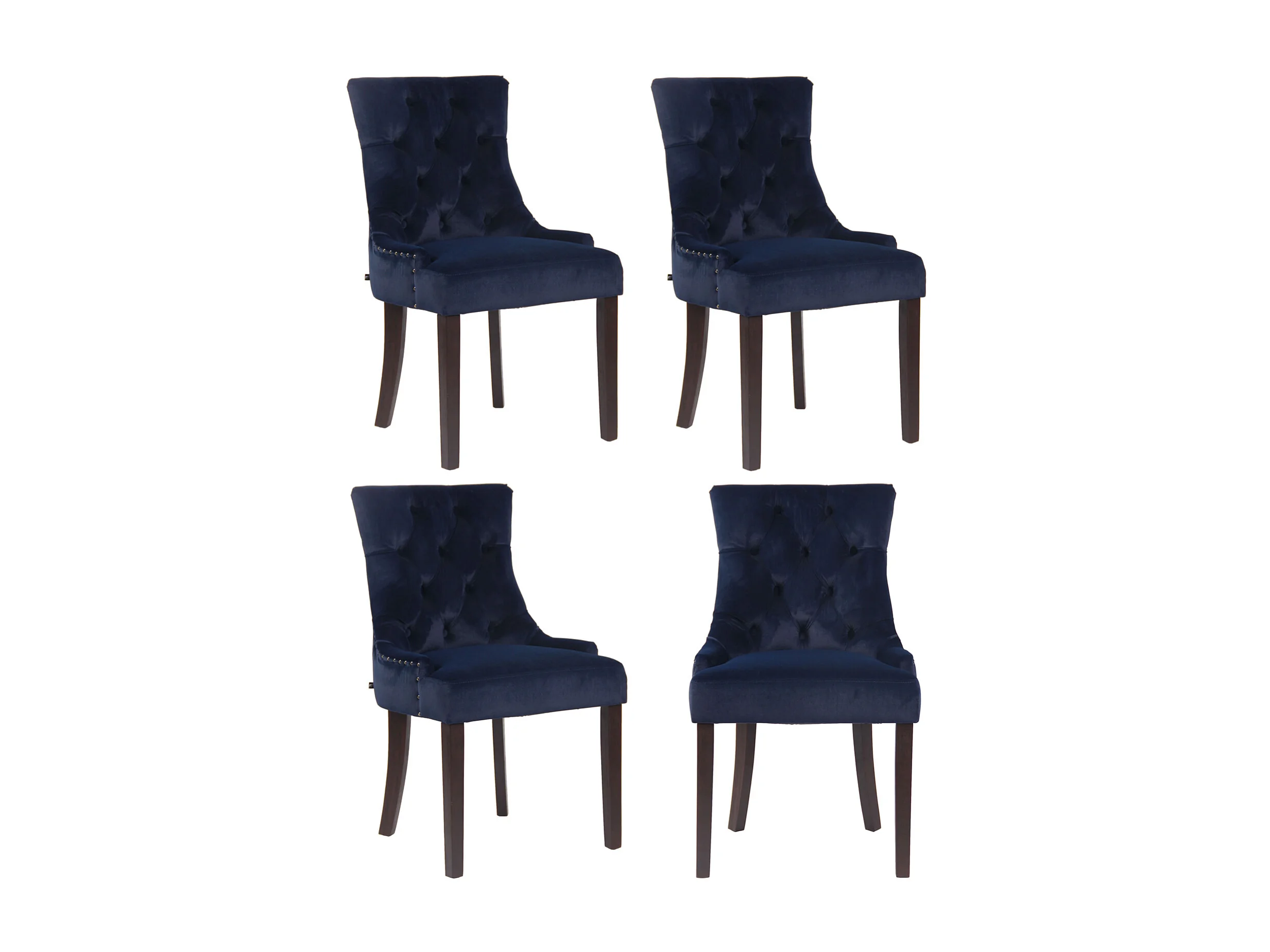 Lot de 4 chaise salle à manger - Velours & Antique - Bleu - Aberdeen